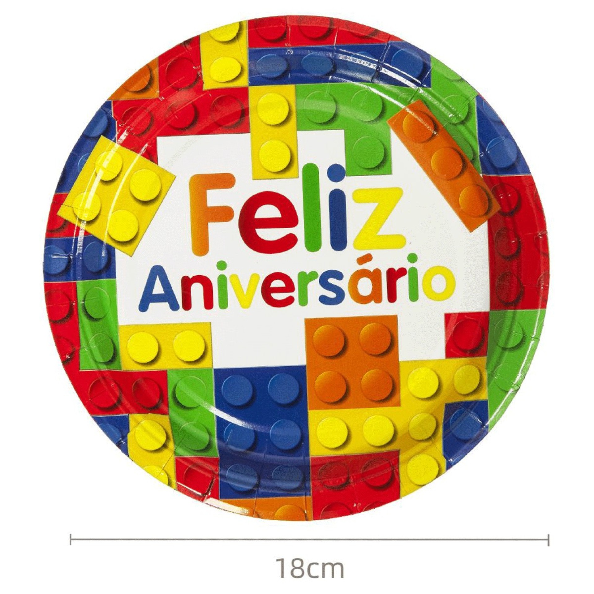 Pack com 6 Pratos Feliz Aniversário com 18cm.