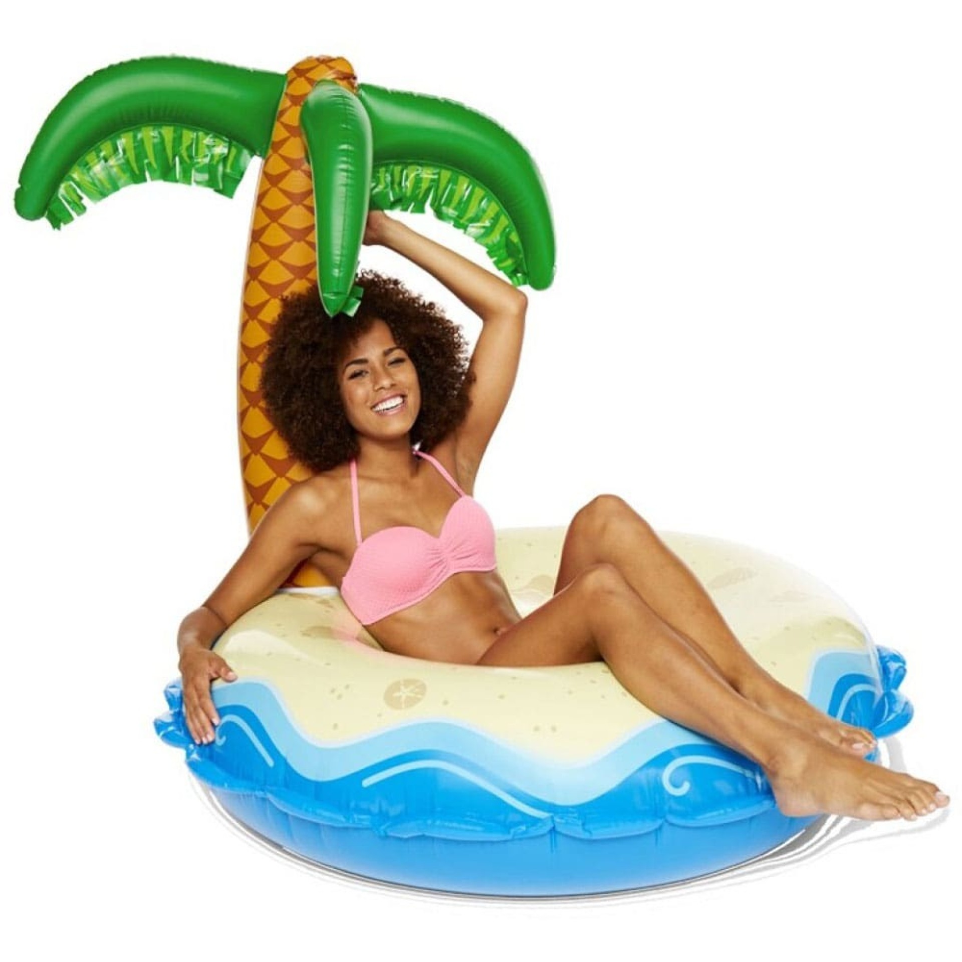 Boia com Palmeira Insuflável. Ideal para festas na praia ou na piscina. Medidas 116x116x114cm.Advertências