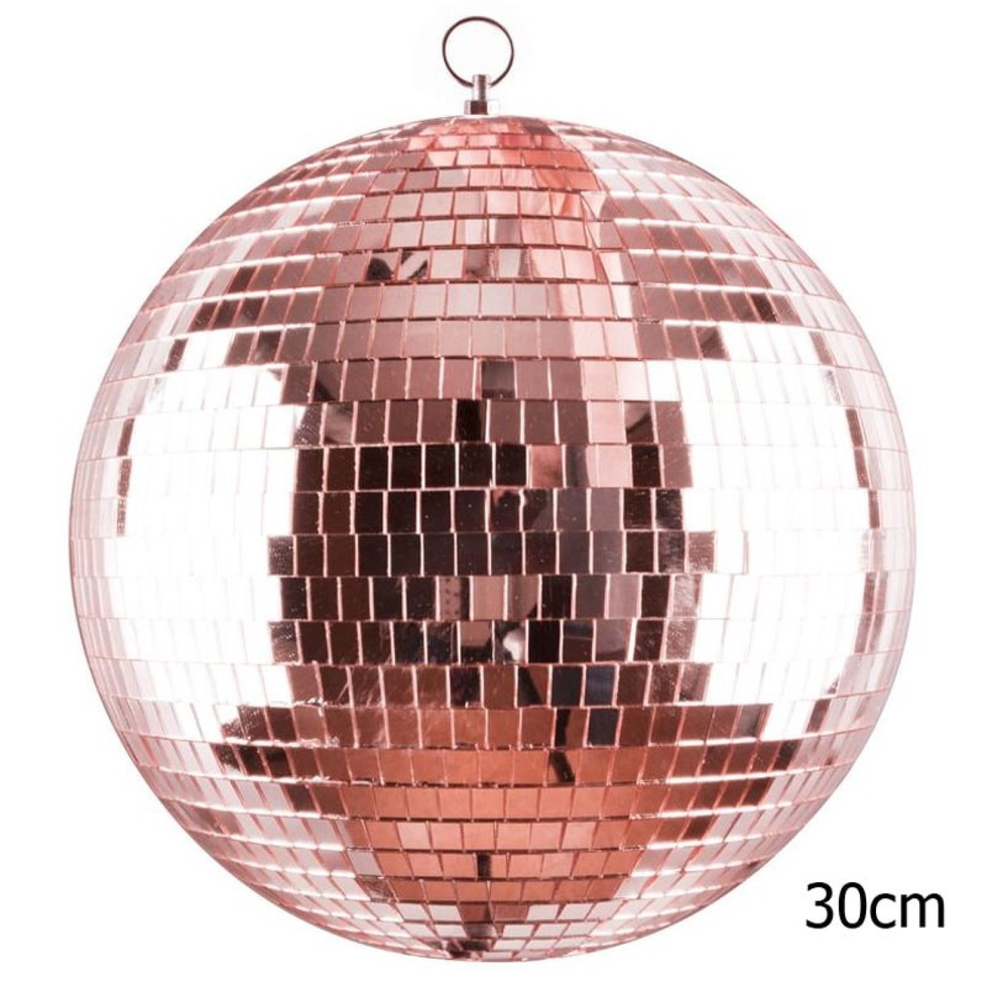 Transforme a sua festa numa autentica Disco Party com a bola de espelhos Rose Gold para pendurar. Medida 30cm de diâmetro. Motor não incluído.Envios