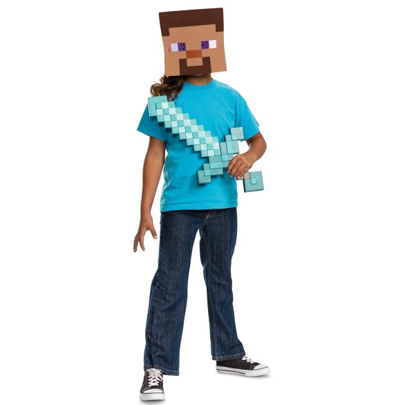 Explora o mundo tridimensional de Minecraft. Kit composto por Máscara e Espada. Artigo Oficial.