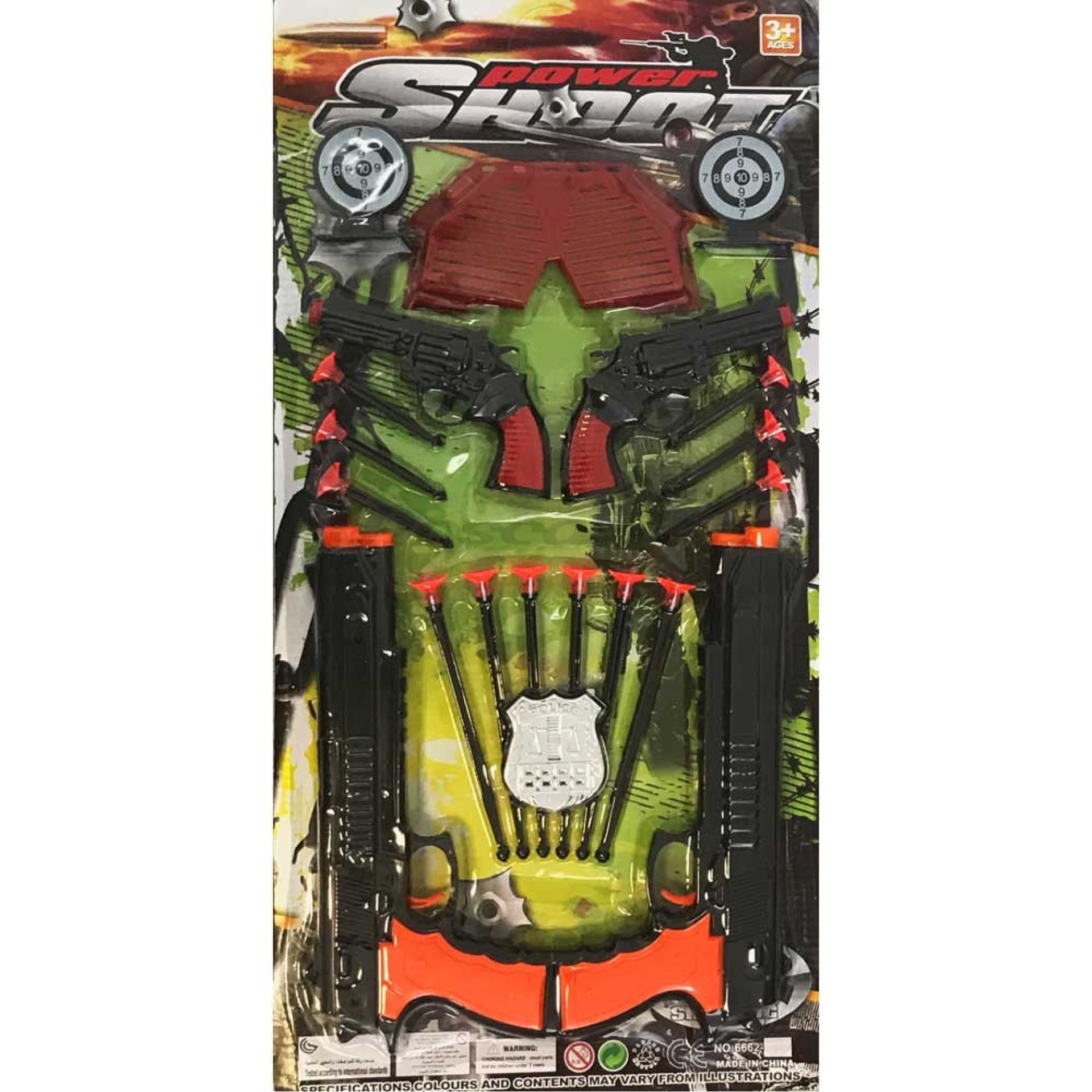 Fantástico kit para completares os teus disfarces. Kit composto por 4 pistolas, 12 balas, 1 distintivo de agente, 1 óculos e 2 alvos.