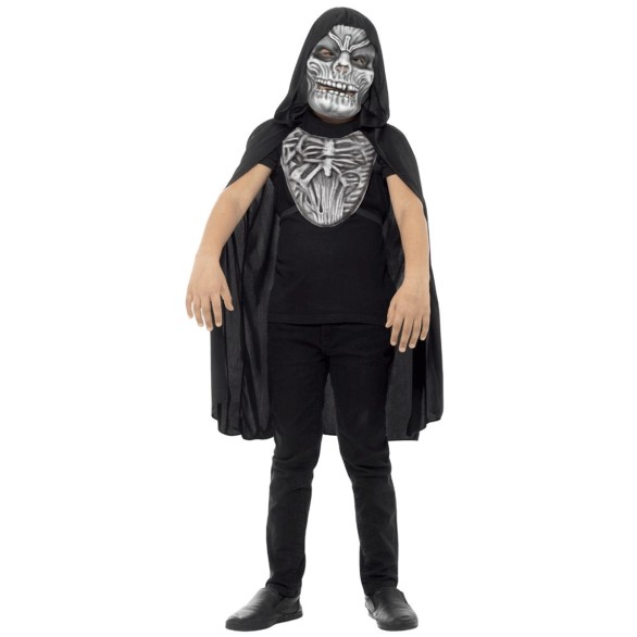 Kit Skeleton Monster para Criança composto por máscara e aplicação para o peito com elásticos para fixar. Demais acessórios não incluídos.Dados Técnicos