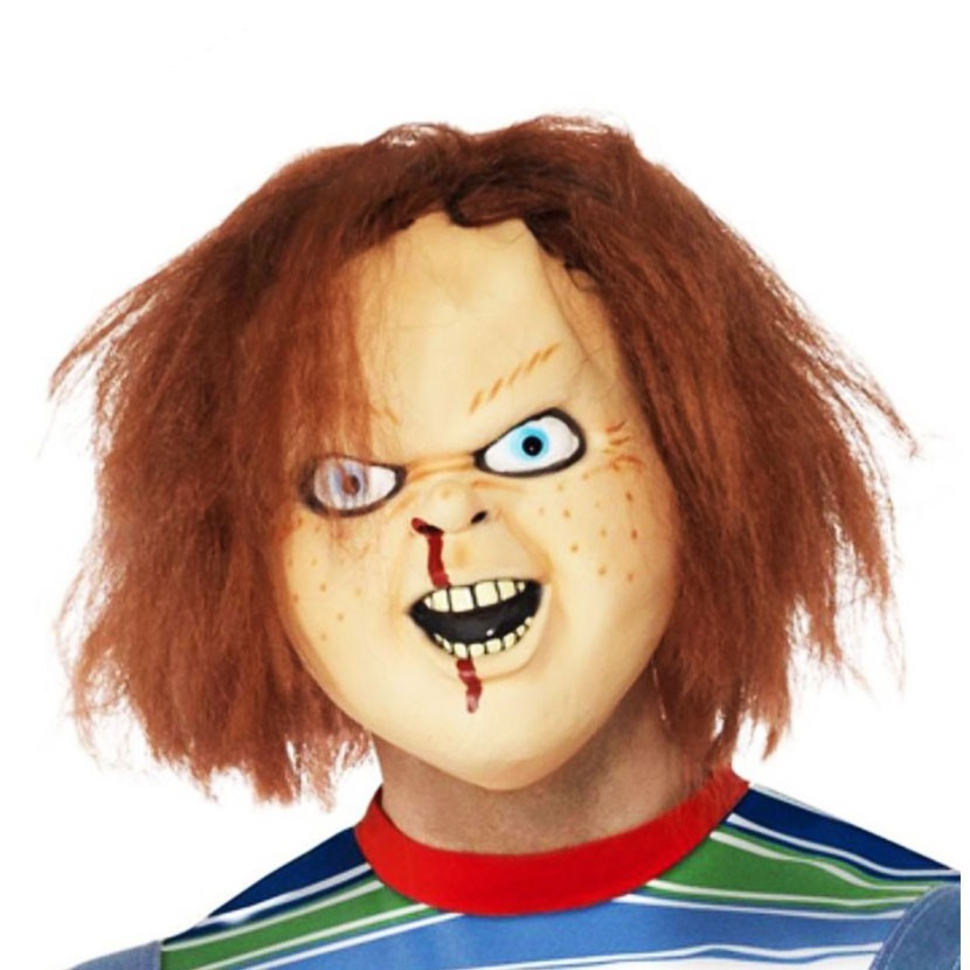 Temida Mascara Chuckie, notório assassino em série cujo espírito habita um bom boneco Guy e continuamente tenta transferir a sua alma da boneco para um corpo humano!! Mascara em latex comk cabelo.Dados Técnicos