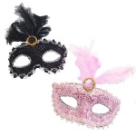 Máscara de olhos Veneziana com pena e pedra anexadas. Complemente com uma capa e está pronta para a festa. Artigo comercializado à unidade e em 2 cores diferentes.Dados Técnicos