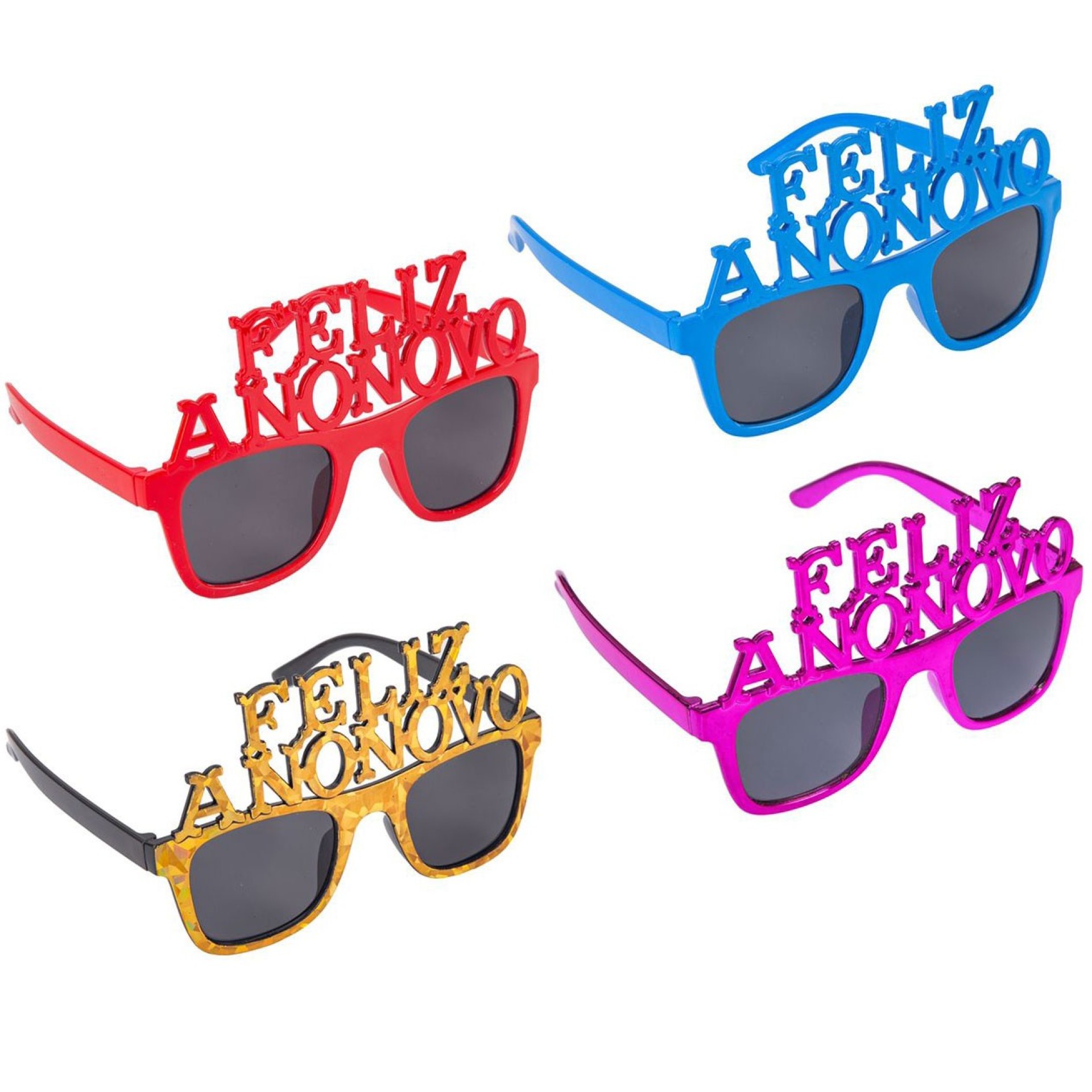 Óculos Feliz Ano Novo 4 cores. Artigo vendido à unidade. Disponivel nas cores azul, rosa, vermelho e dourado.Dados Técnicos