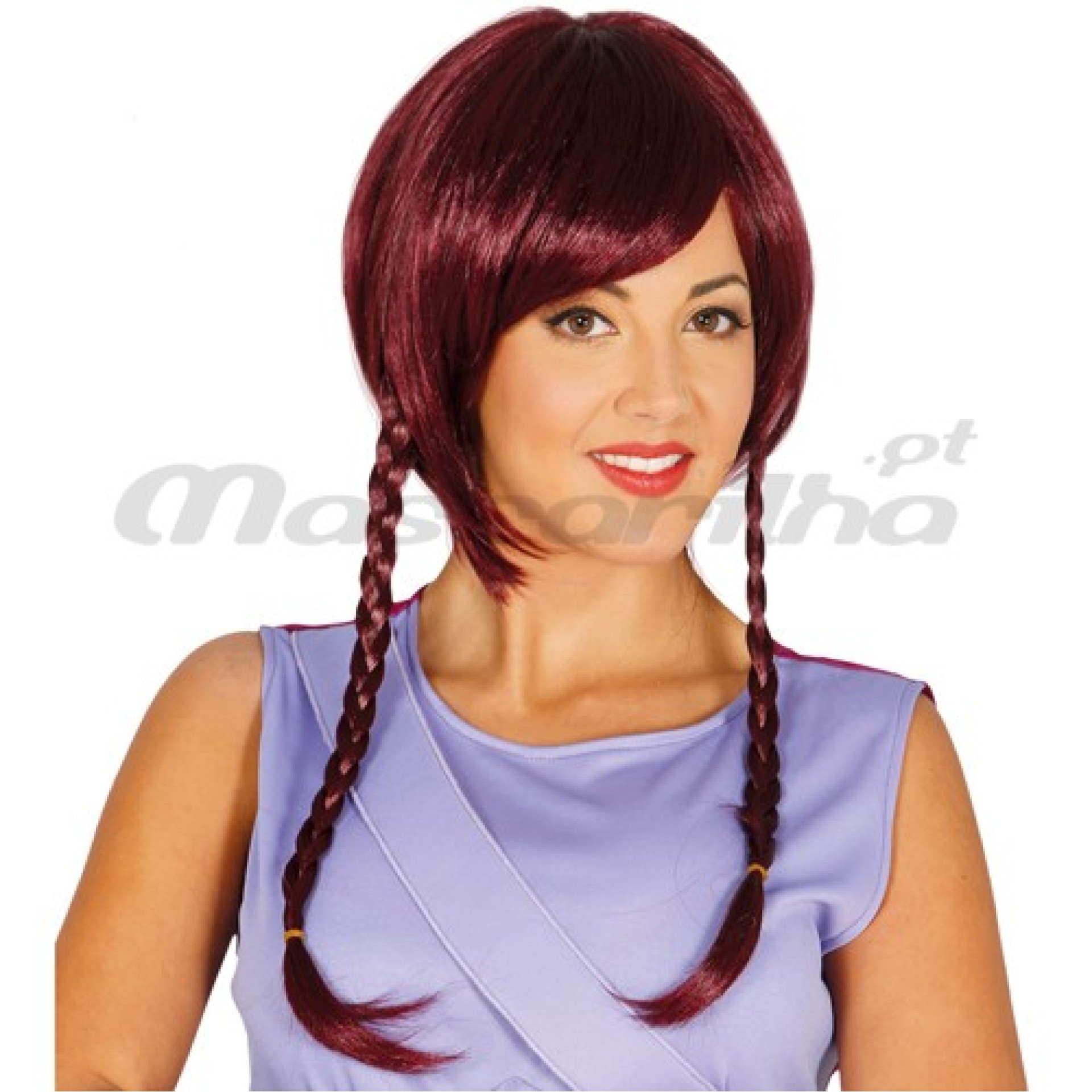 Peruca castanha com tranças, ideal para complementar os seus disfarces de pipi das meias altas, tirolesa, criada, entre outros.Dados Técnicos