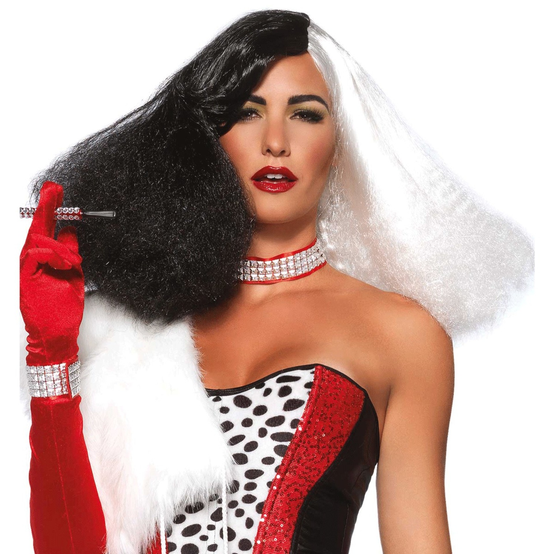 Magnífica peruca nos tons branco e preto. Perfeita para complementar os disfarces da extravagante Cruella de Vil.Dados Técnicos