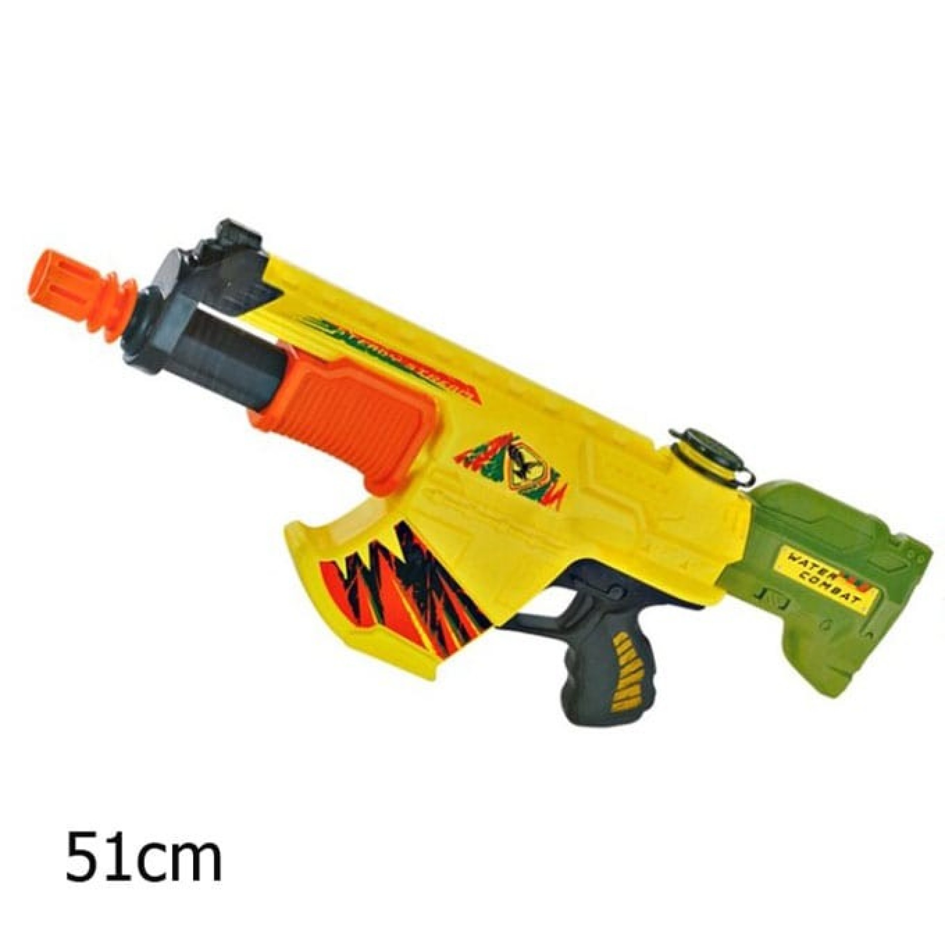 Pistola de Água WATER COMBAT com 51cm. Artigo em plástico. Com longo alcance de Disparo através de movimento FRONT BACK . Perfeita para festas de verão na praia ou na piscina.Advertências