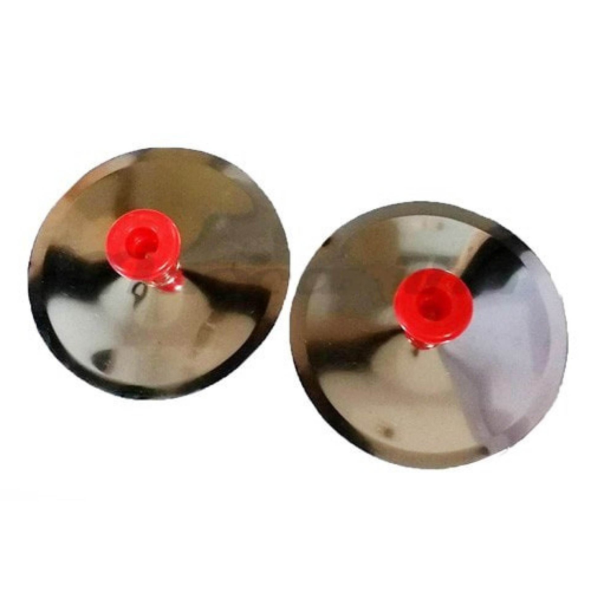 Pratos em metal prateado com pega vermelha. 11,5cmEnvios