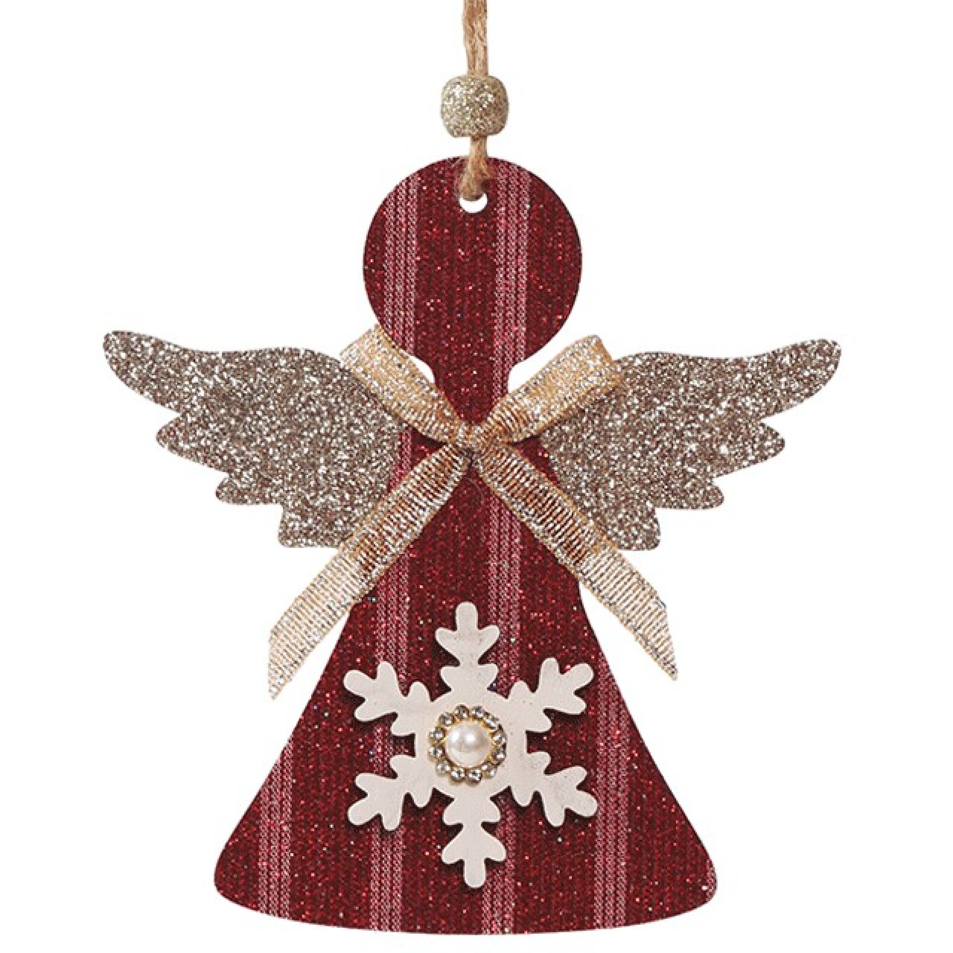 Anjinho de Natal com Glitter. Artigo em madeira com 12cm. Ideal para pendurar no seu pinheiro de Natal.