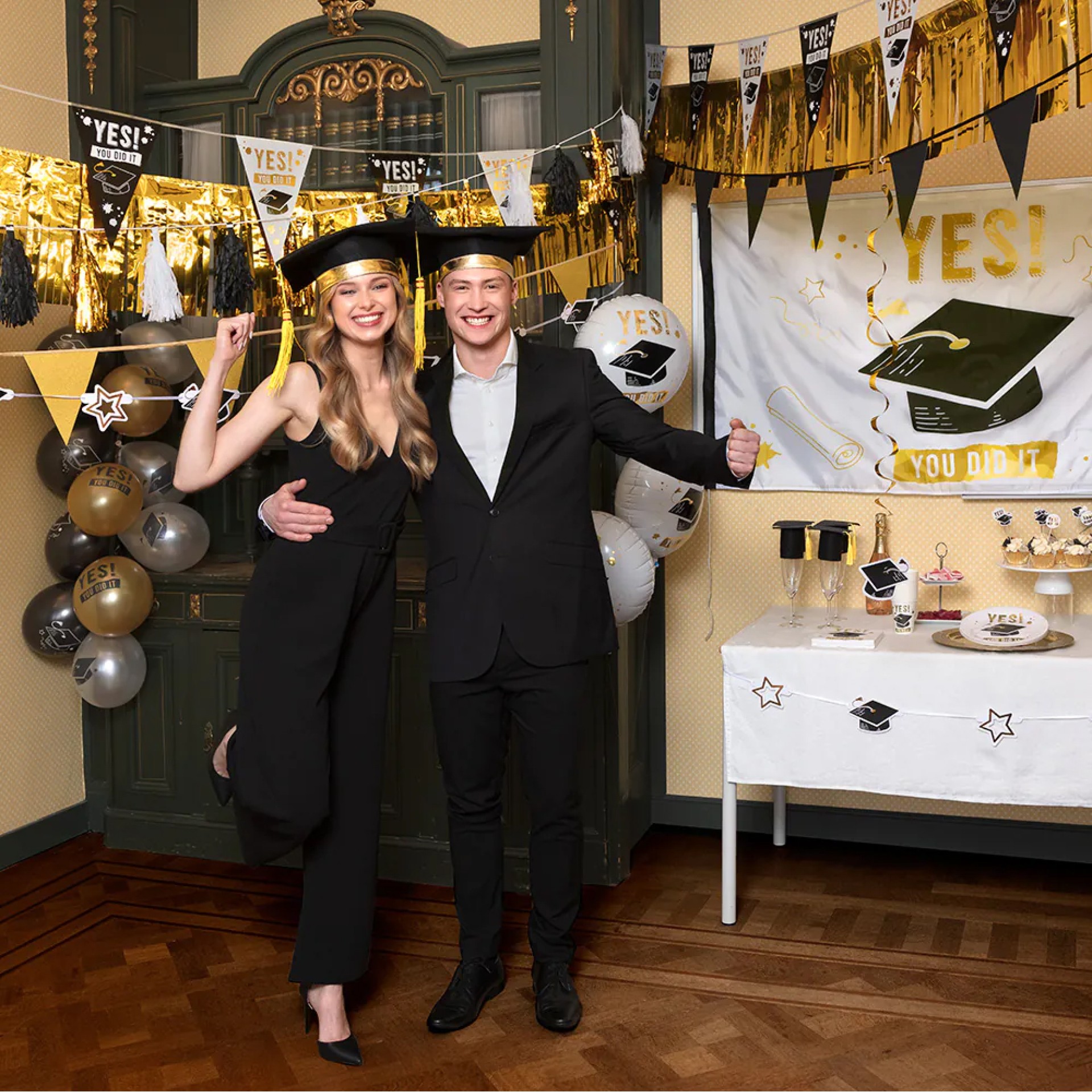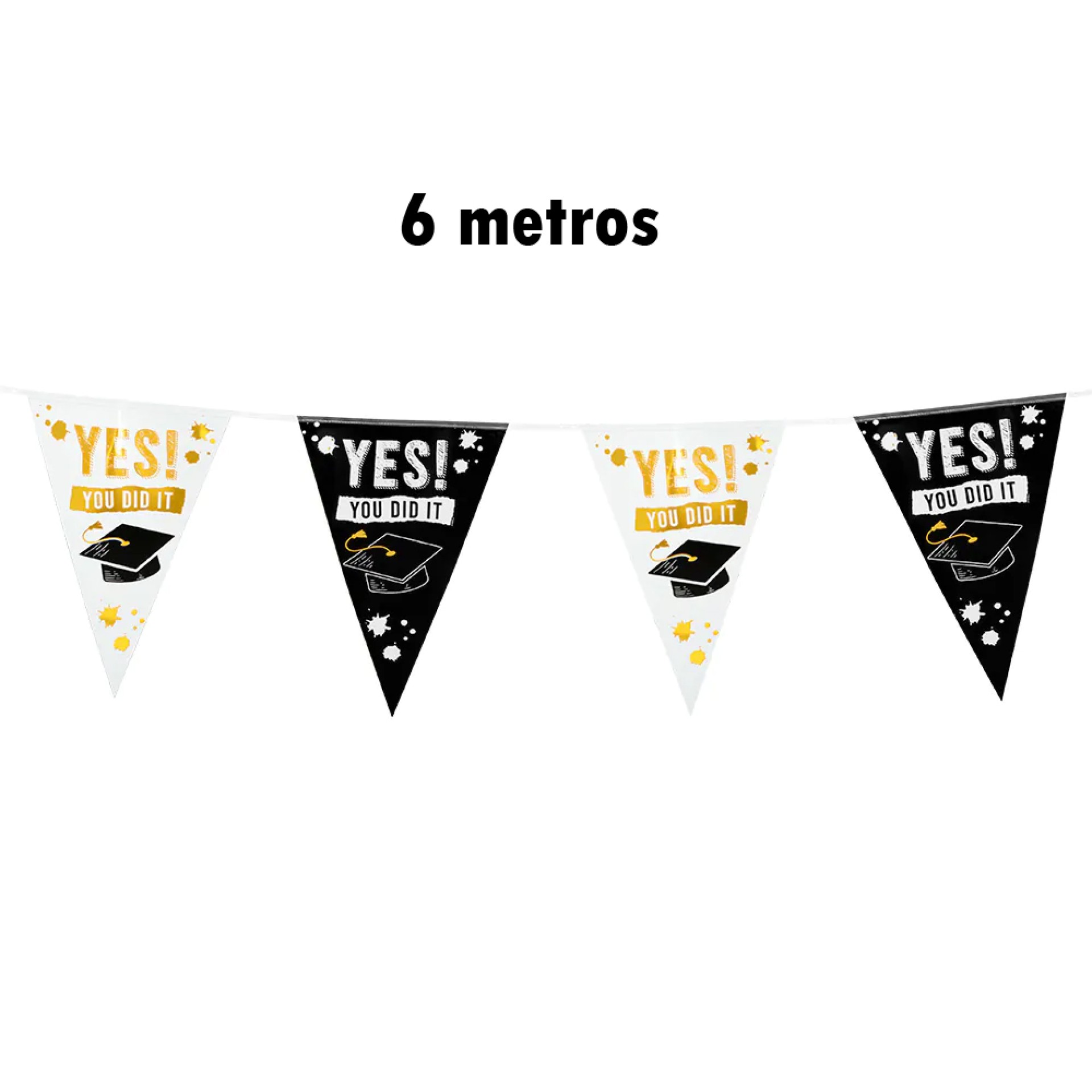 Bandeirolas Fim de curso com 6 metros em plástico. Cada bandeirola mede 30x20cm.Advertências