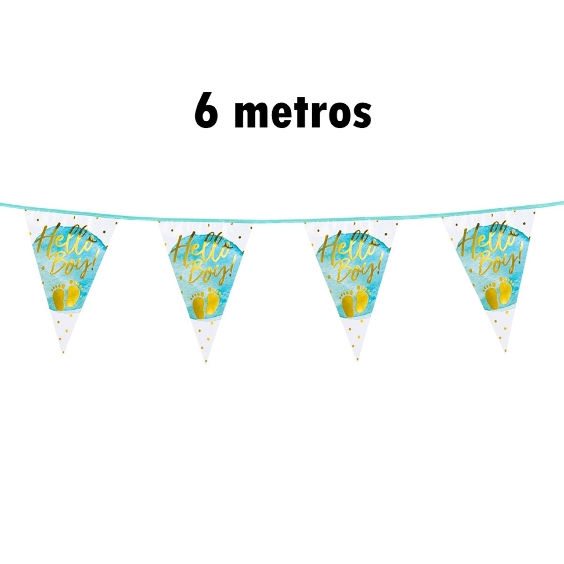 Bandeirolas Hello Boy com 6 metros. Decore o seu chá de bebé com estas bonitas bandeirolas. Cada bandeirola mede 20x30cm.Advertências