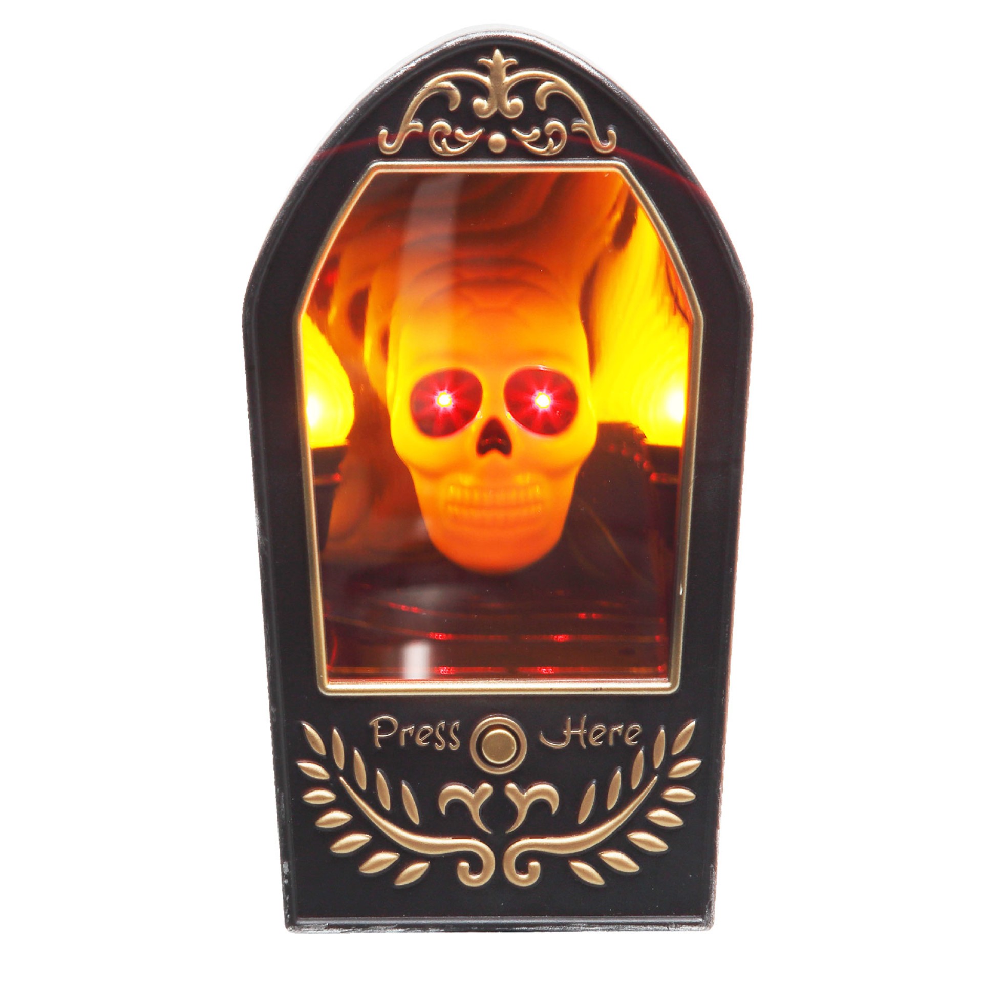 Adicione um toque de mistério à sua decoração com a campainha da caveira. E quando carrega no botão esteja à espera de tudo pois a caveira fala consigo. Com som e luz. Inclui 3 pilhas AAA.