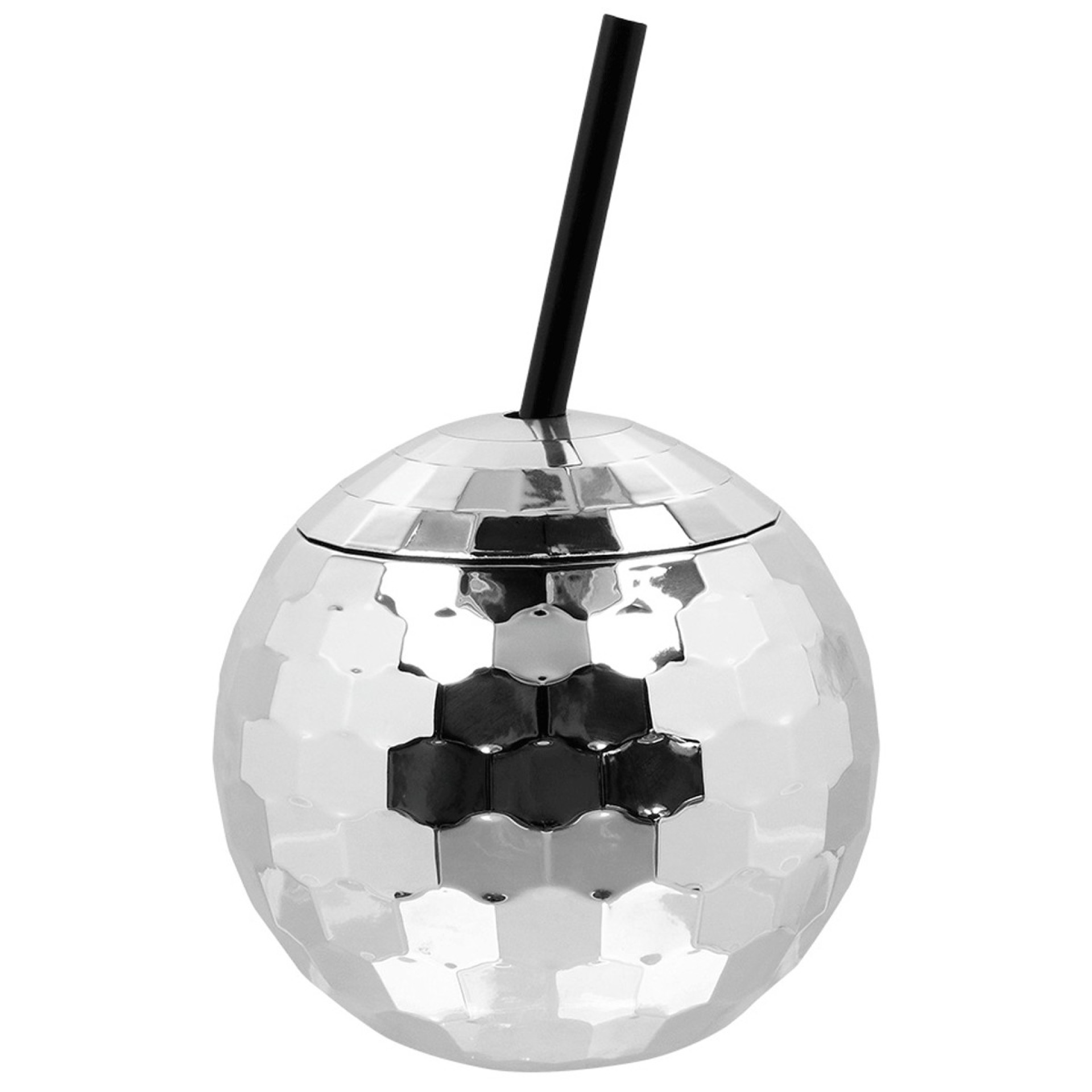 ,Copo Bola Espelhos Prata com palhinha reutilizável.Envios