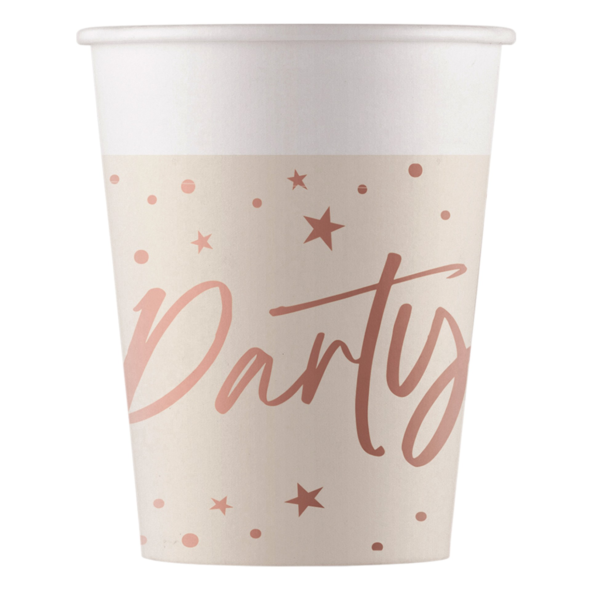 Pack com 8 copos em papel de 200ml. Elegantes para decorar as mais variadas festas de aniversário.