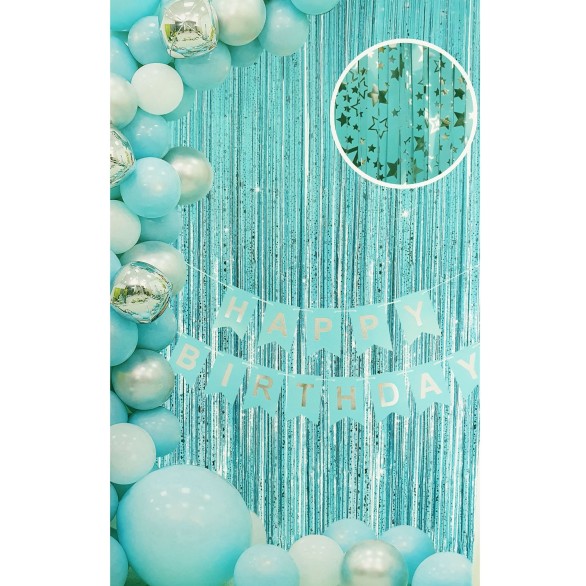 Cortina Azul Caribe com estrelas para pendurar. Ideal para decorar festas de aniversario, chá de bebé, batizados, entre outros. Medidas 2mX1m.Envios