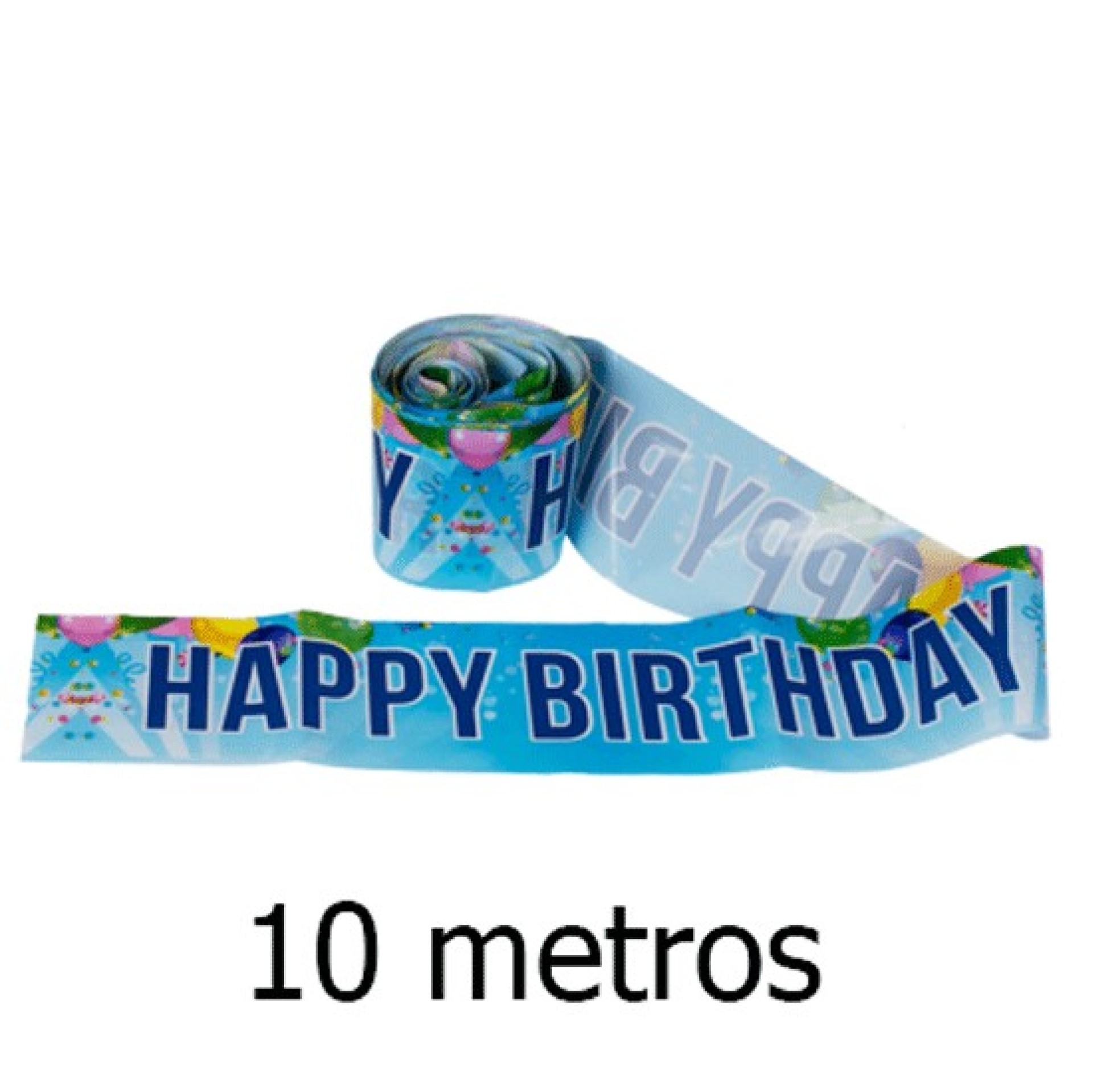 Fita em plástico Happy Birthday com 10 metros. Ideal para decorar festas de adultos e crianças.Envios