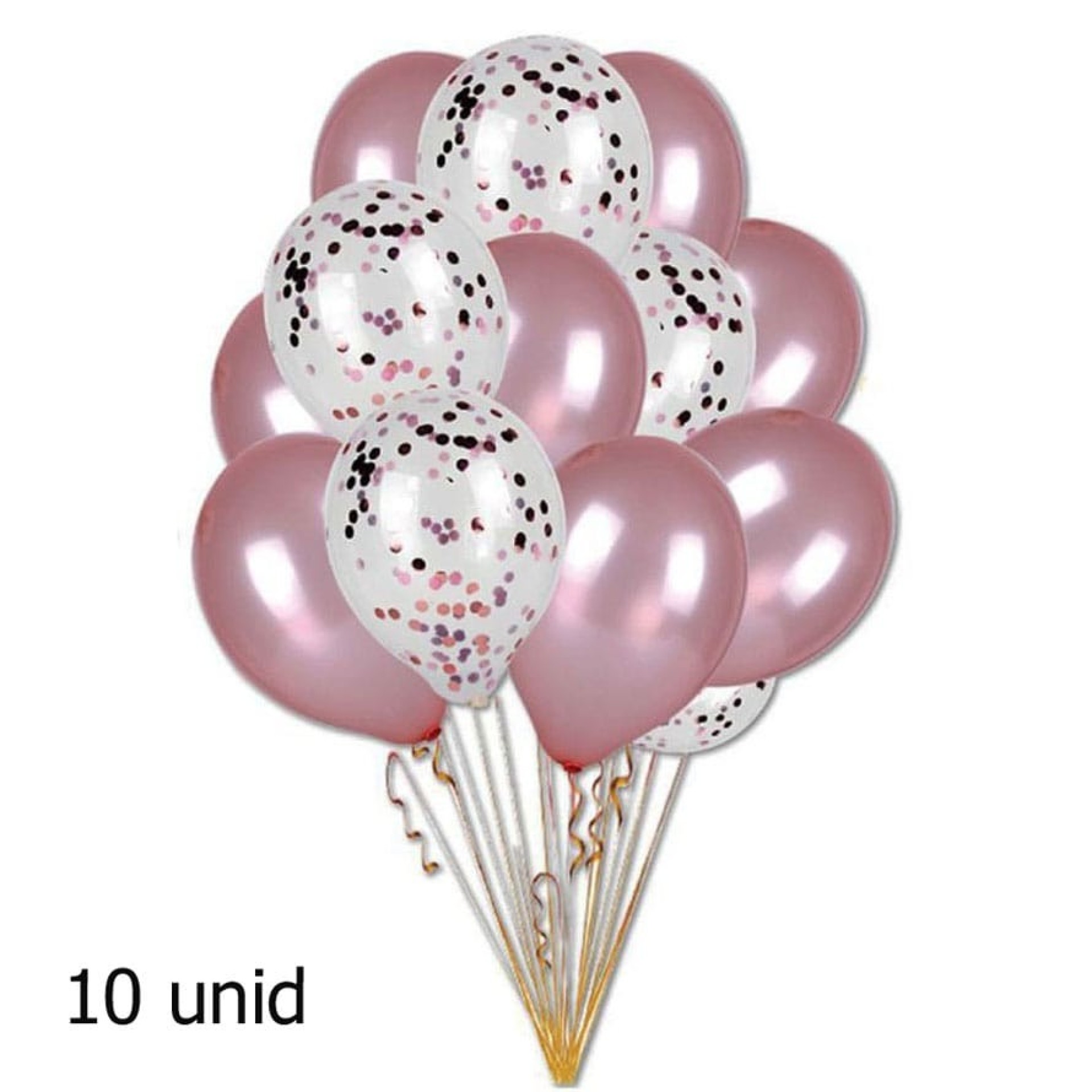 Kit de Balões Rose Gold com 10 unidades. Para decorar aniversários, casamentos, chás de bebé e muito mais. Cada pack contem 5 balões em latex rose gold e 5 balões transparentes com confetis. Podem encher-se com ar ou hélio (não incluído).Advertências