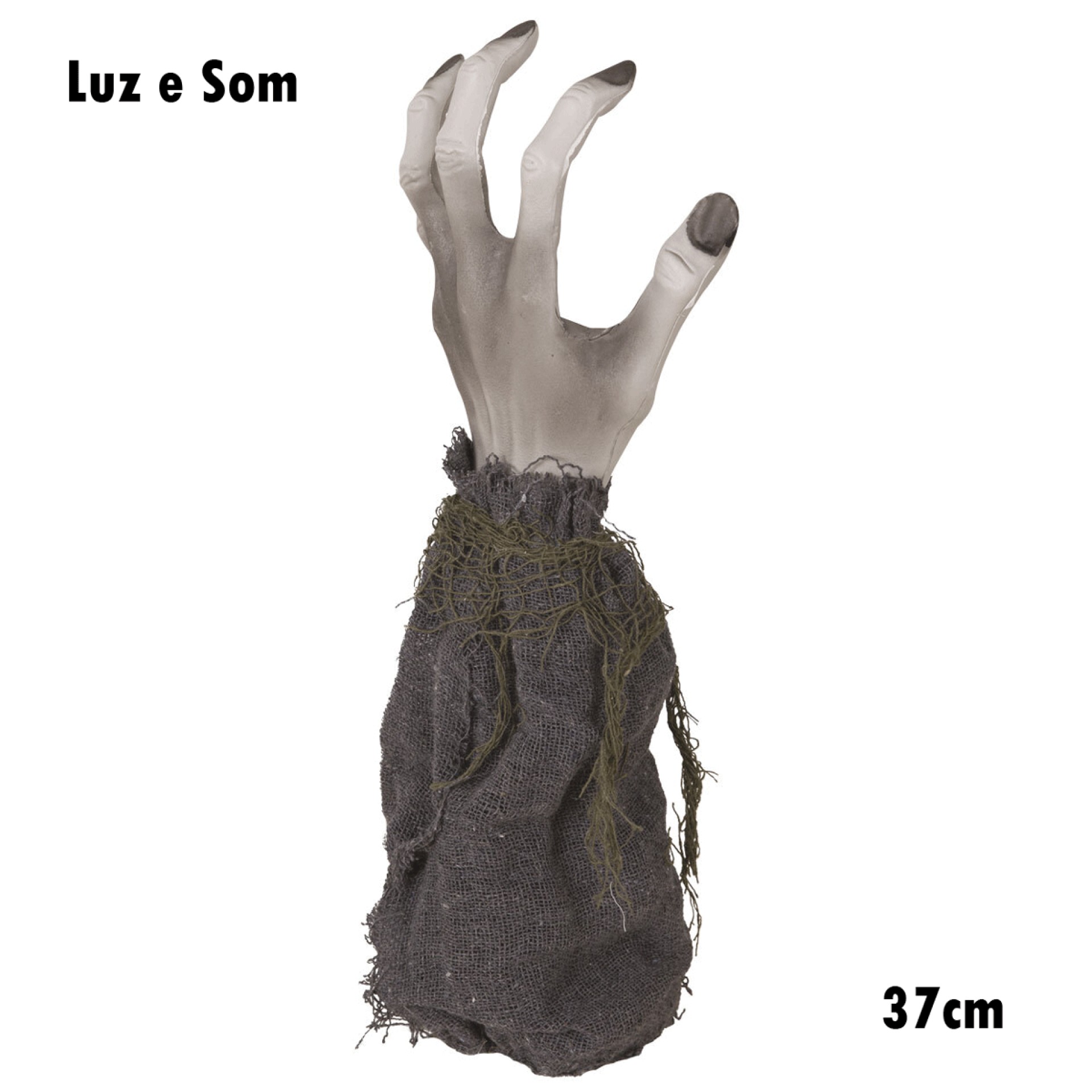 Assustadora Mão de Morto Vivo que anda sozinha e surpreende todos. Com Som e movimento, 37cm.. Funciona com 2 pilhas AA (não incluídas).VEJA VIDEOAdvertências