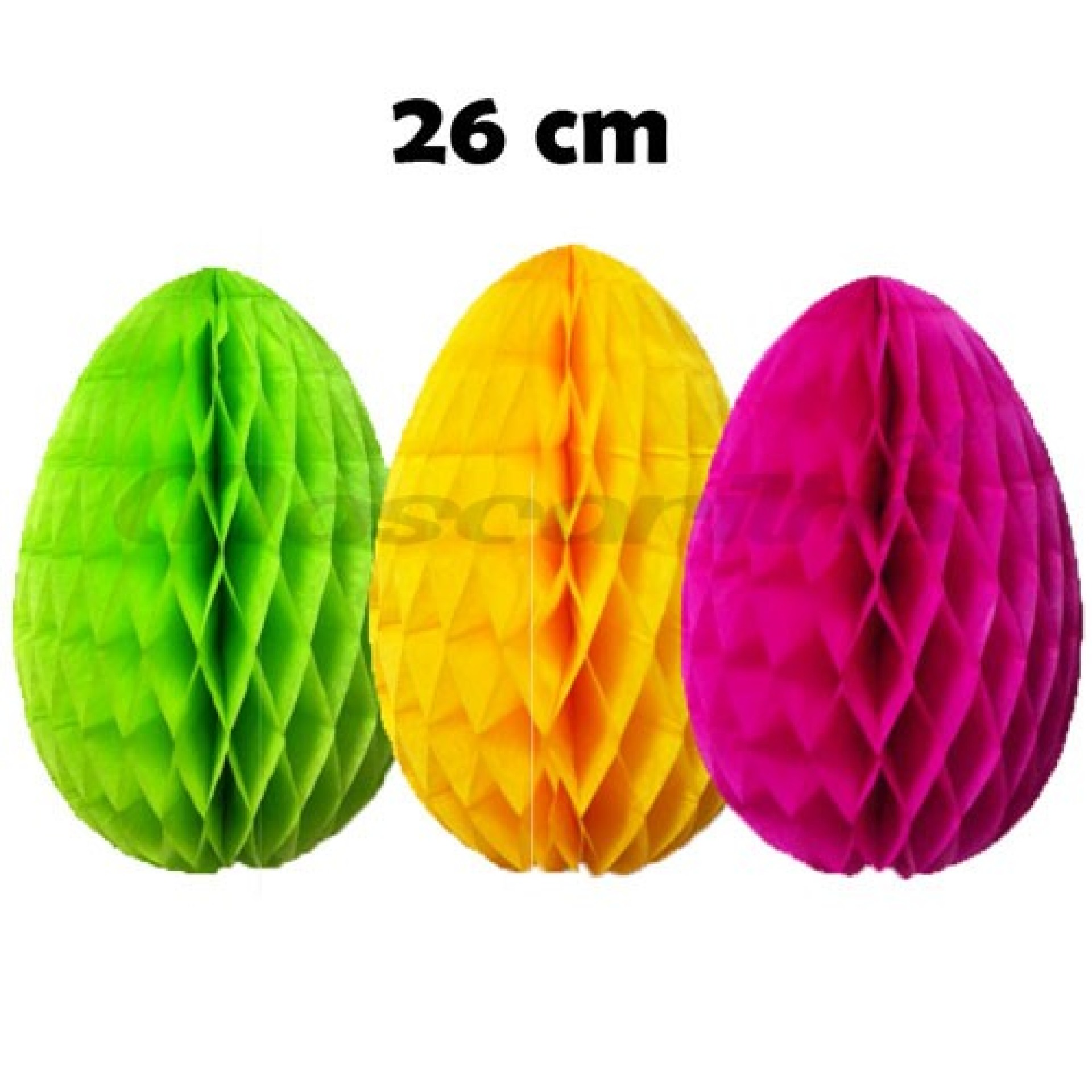 Ovo em papel de seda 26cm, com favos, vendido à unidade nas cores amarelo, rosa fushia e verde.Advertências