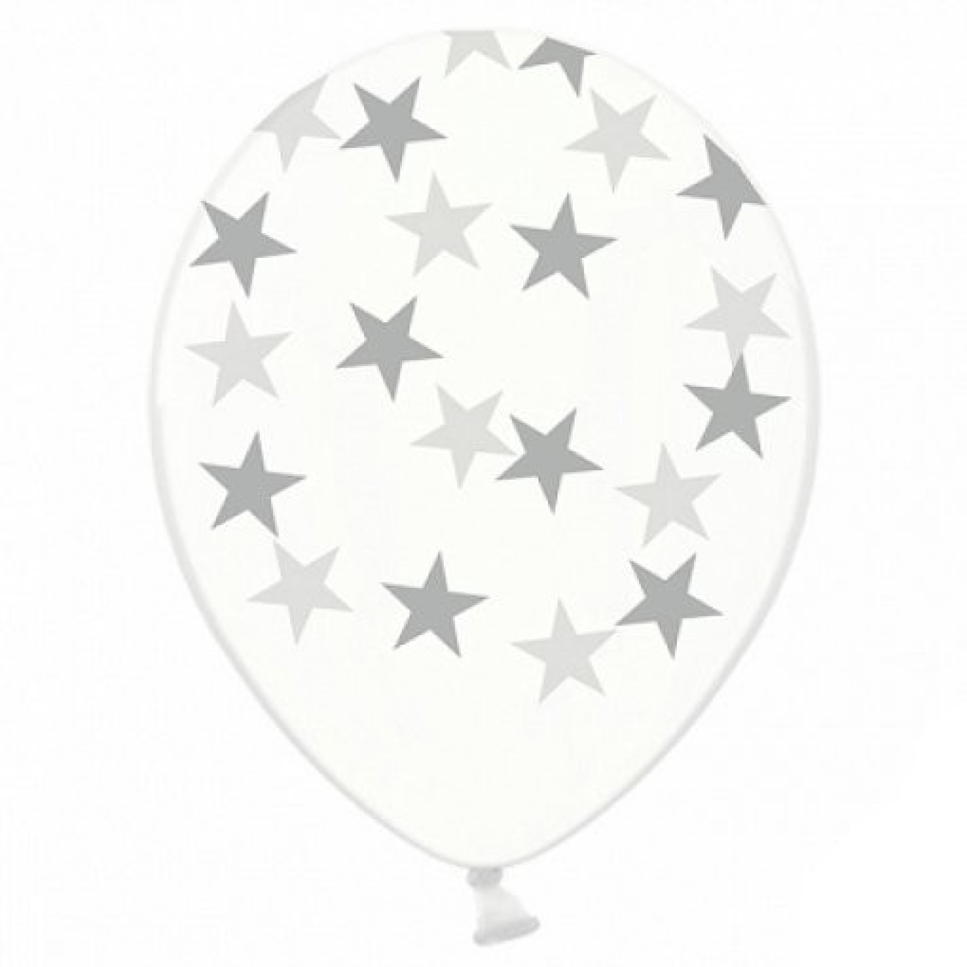 Pack Balões Transparentes Estrelas Prateadas 6unid