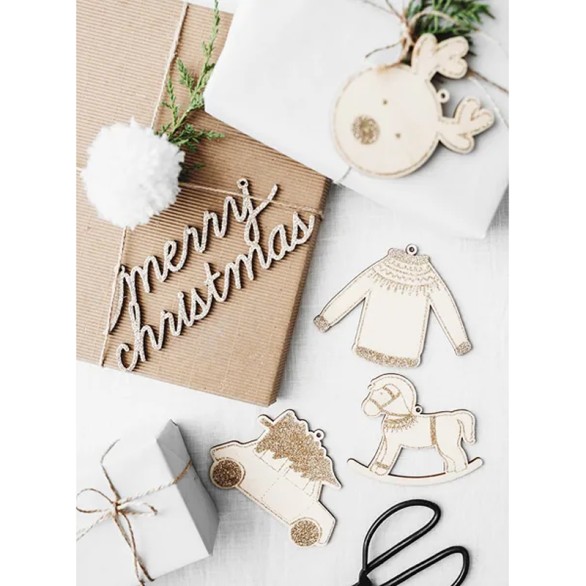 Caixa com 10 pendentes de Natal em madeira. Surpreende a tua família com estas bonitas peças em madeira.Advertências