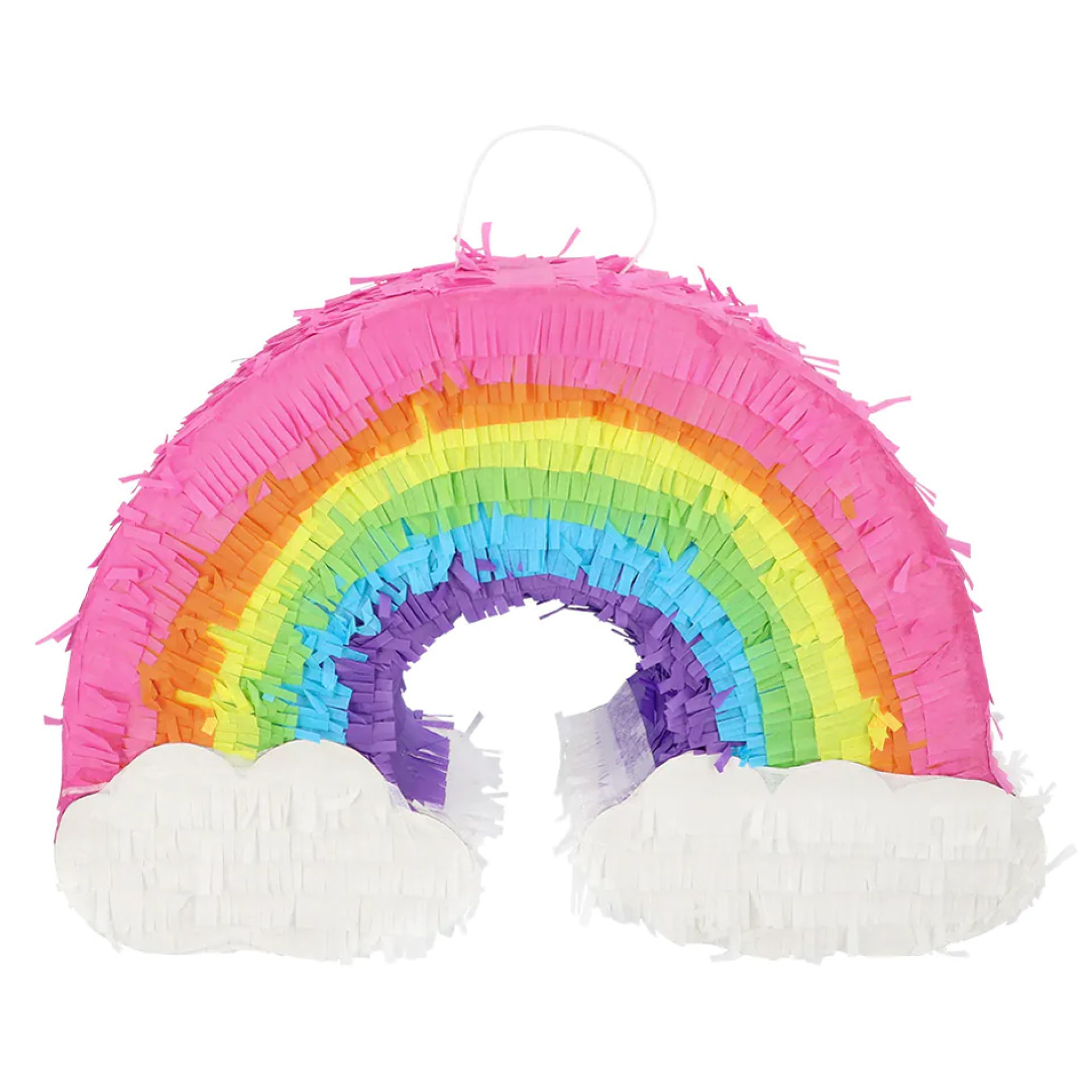 Traz cor e alegria à festa com esta bonita pinhata arco-íris! O design alegre com camadas coloridas e detalhes suaves de nuvens torna-a o complemento perfeito para uma festa infantil, aniversário ou chá de bebé. Enche a pinhata com doces, confettis ou pequenos presentes e que a magia comece! Medidas 31x10x45cm. Artigo com sistema de bater.Advertências