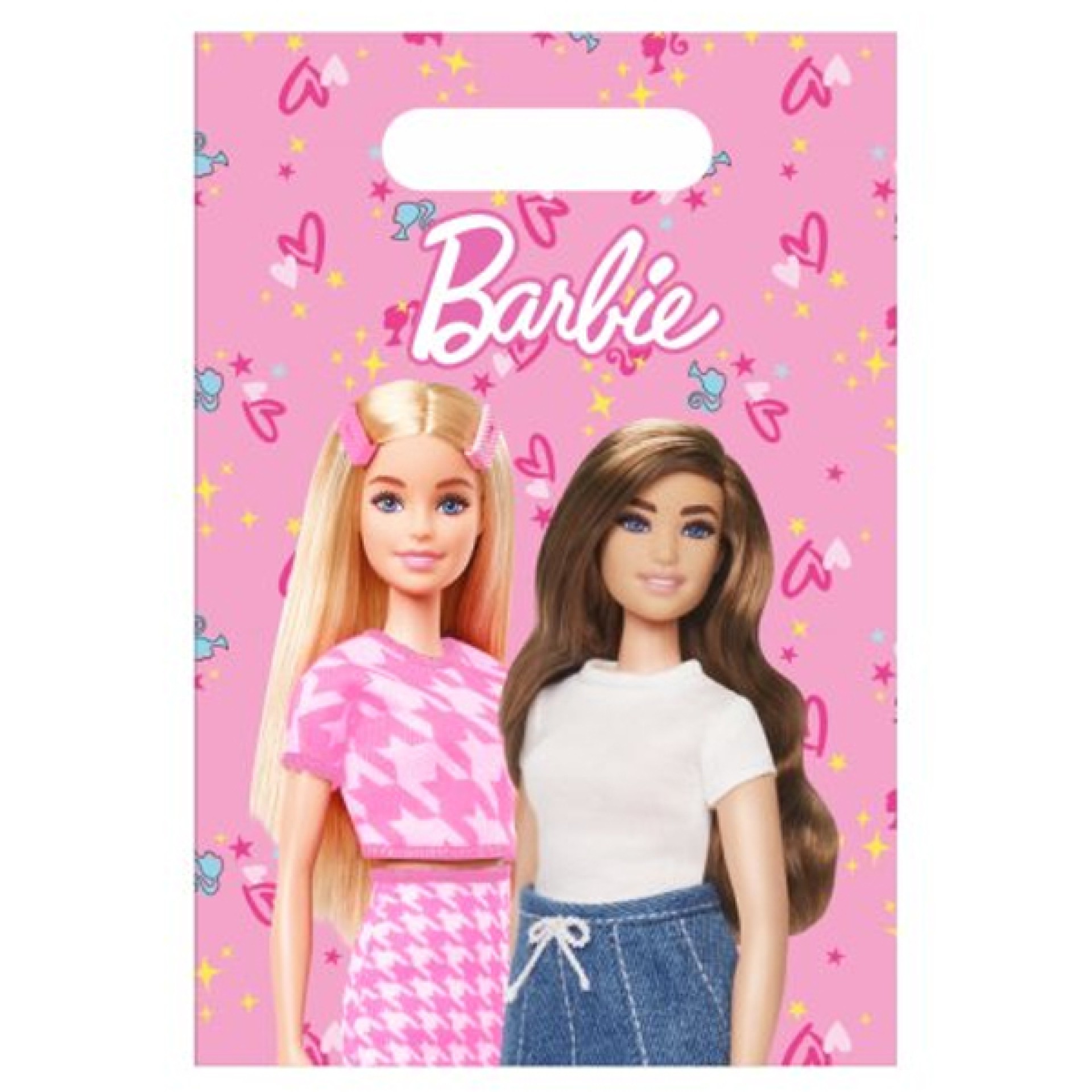 Pack com 6 sacos oferta em plástico. Design Barbie.Advertências