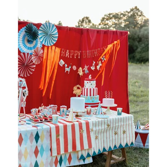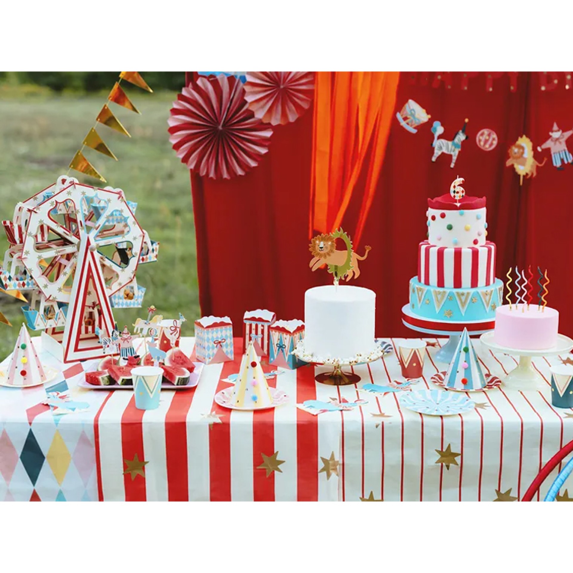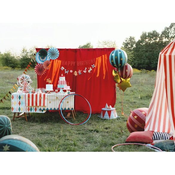 Toalha Circus Riscas Vermelhas em papel com 120x180cm.Advertências