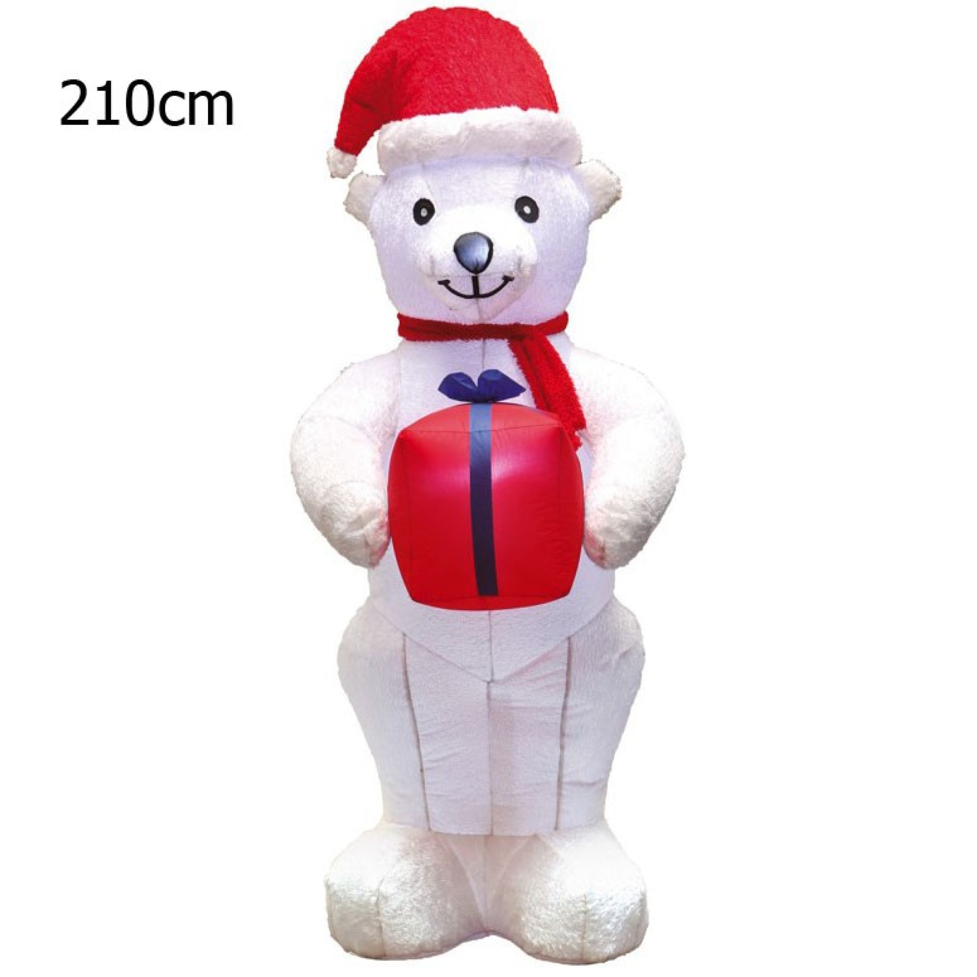 Urso Insuflável com 210cm. Perfeito para decorar as tuas festas de Natal. Artigo com Luz, para usar no exterior ou dentro de casa. Inclui fio para ligar à corrente eléctrica.Advertências