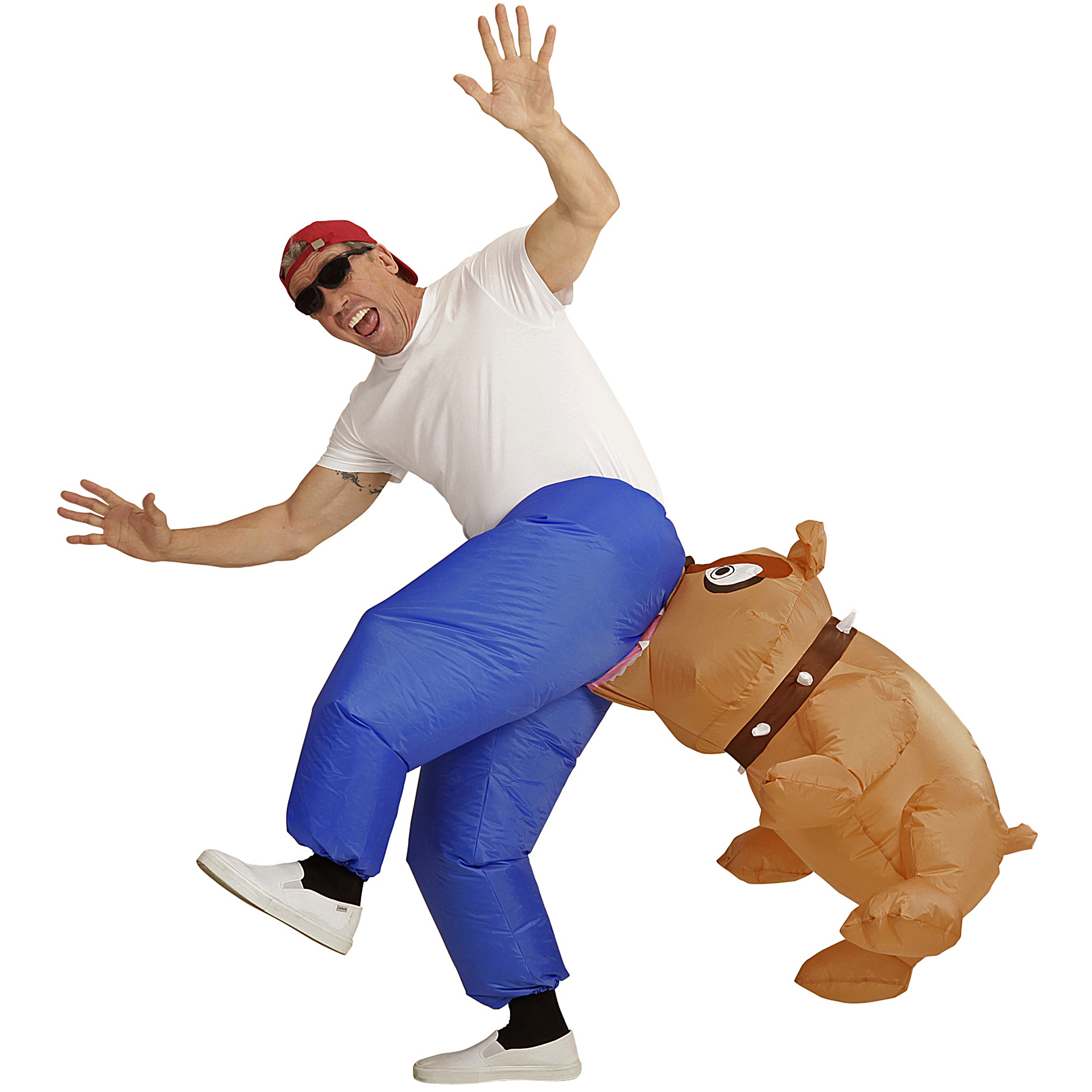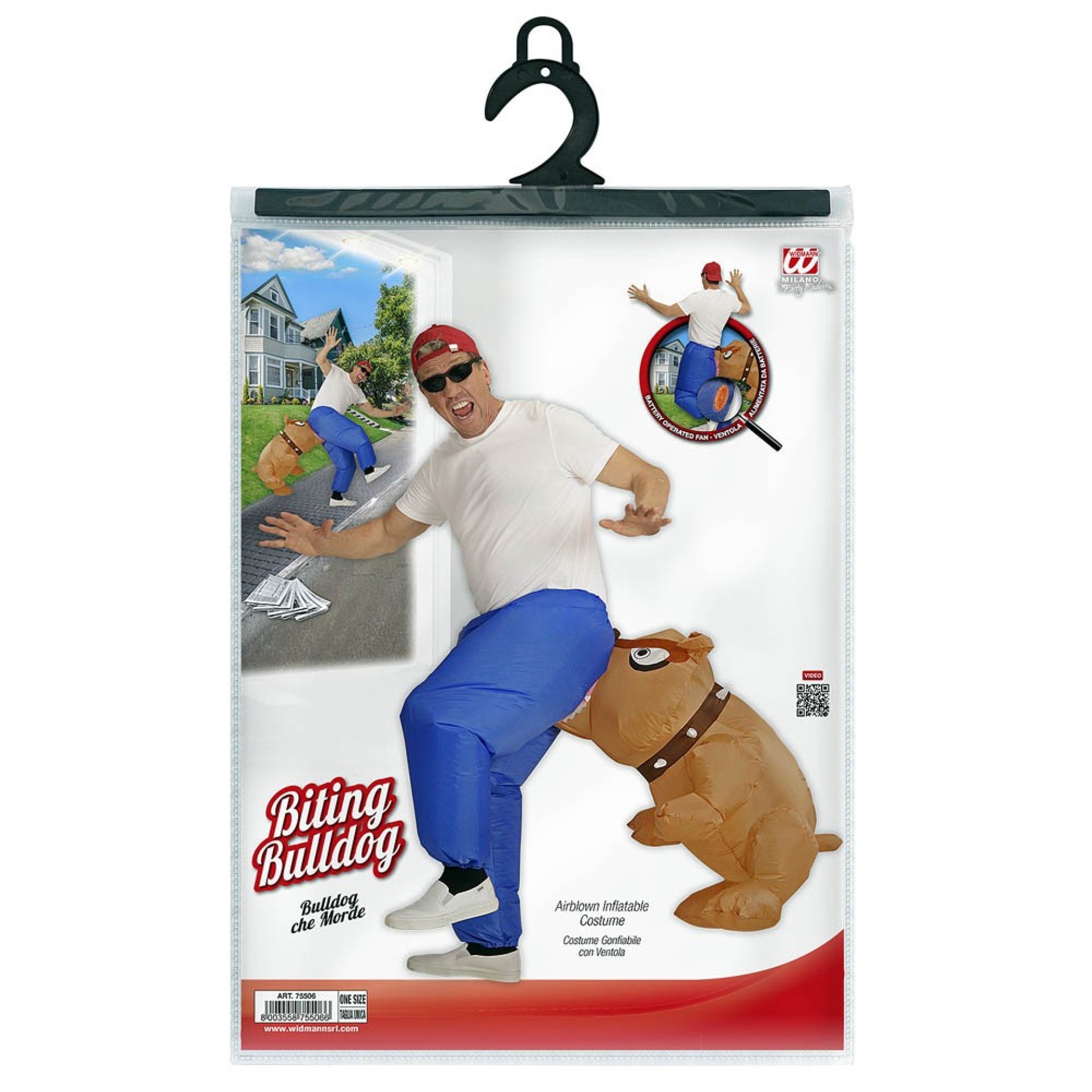 O fato Bulldog a Morder incluí: fato da cintura para baixo insuflavel e ventoinha com alimentador (alimentador funciona com 4 pilhas tipo AA de 1,5V não fornecidas). Restantes acessórios não fornecidos. Uuiii...uuii... este cão não me larga... gostou da chicha!Dados Técnicos