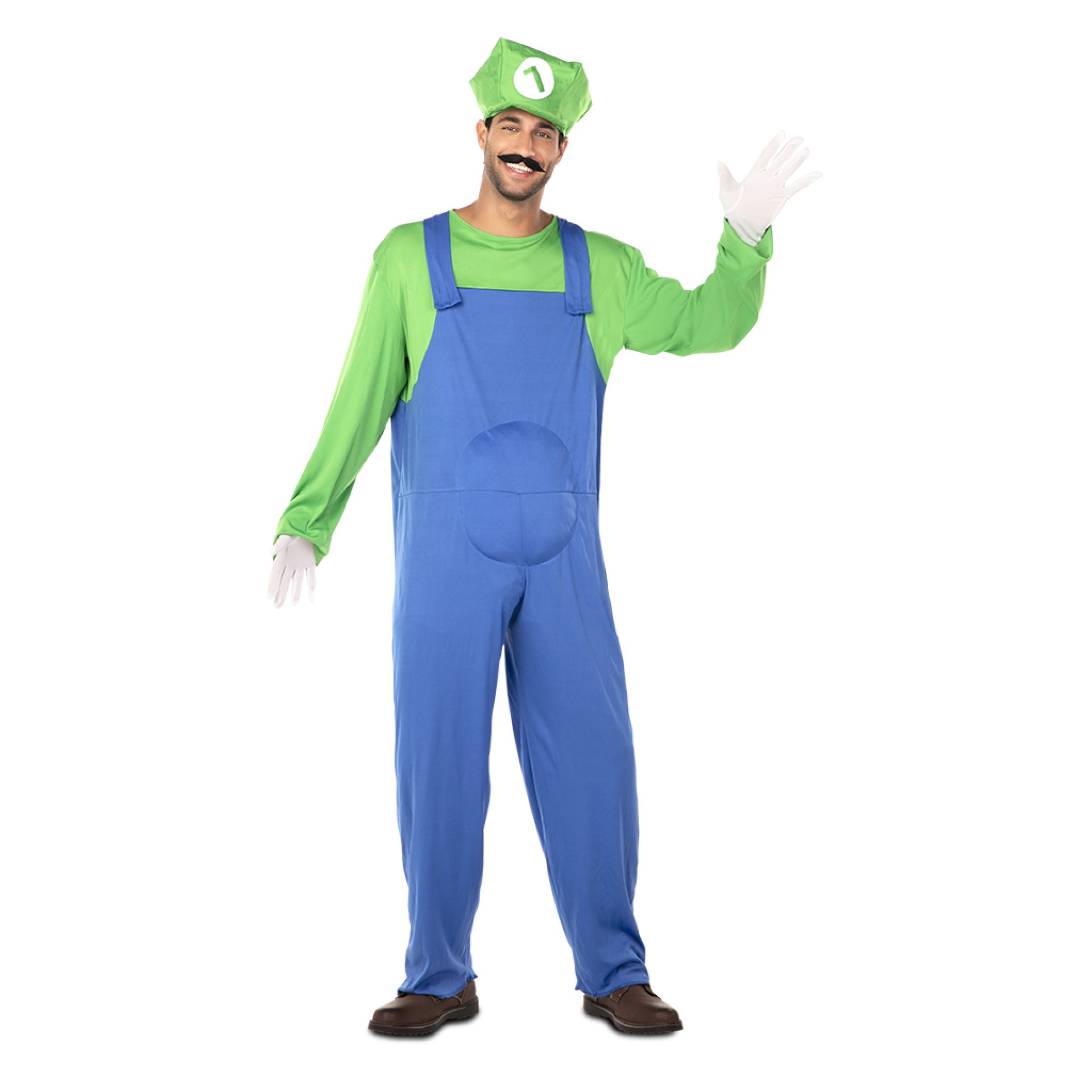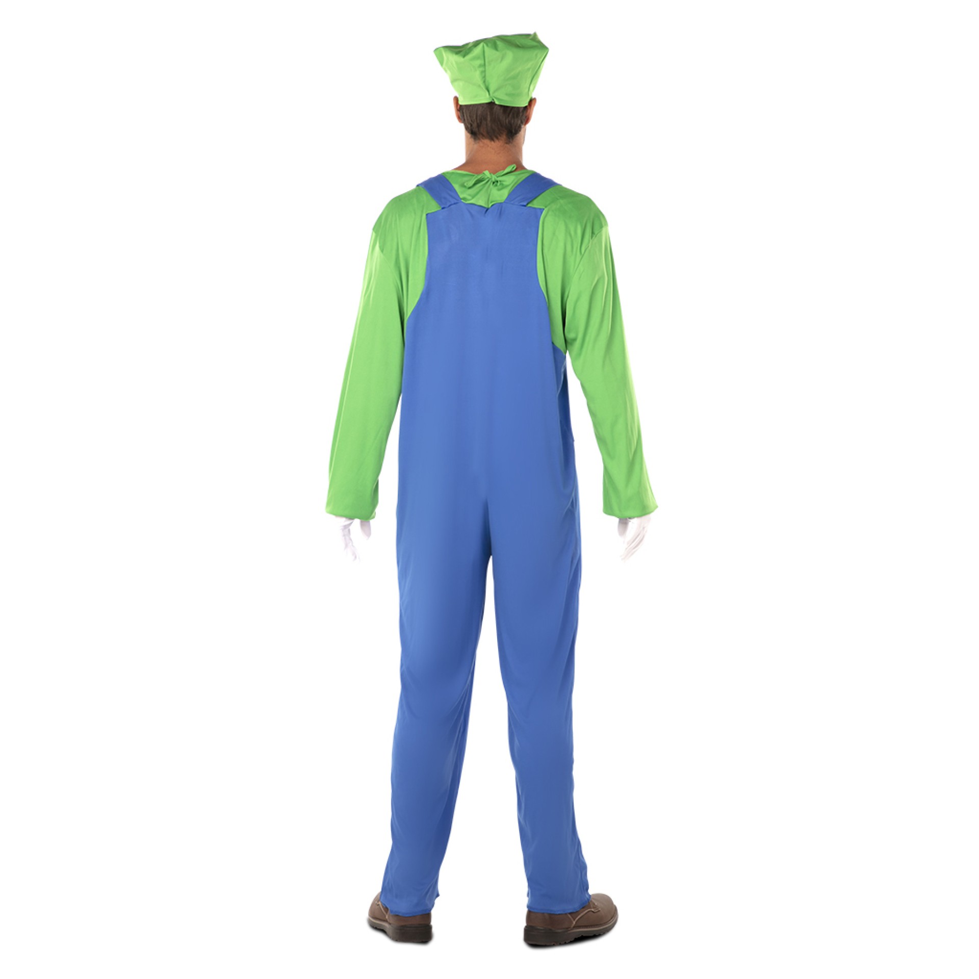 Fato da clássica consola de Jogos que Inclui boné, jardineiras e camisola verde. Demais acessórios não incluídos.