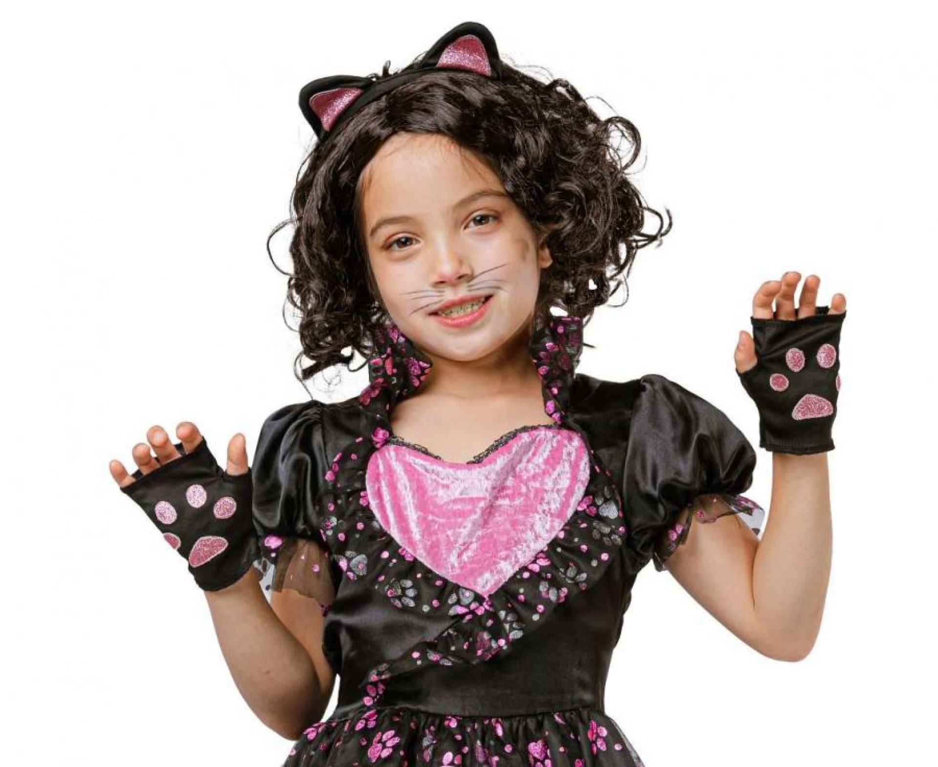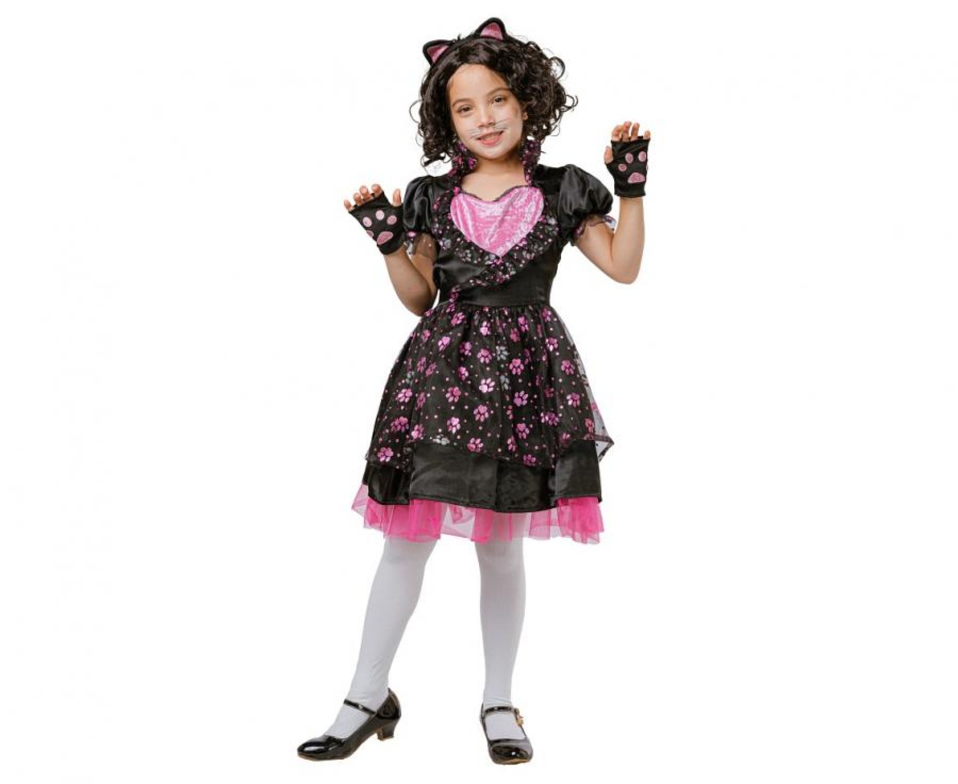 A gatinha mais fashion está aqui!! com o Fato Gatinha Kitty heart que inclui vestido com coração no meio e detalhes de patinhas, luvas e bandolete com orelhas. Demais acessórios não incluídos.Dados Técnicos