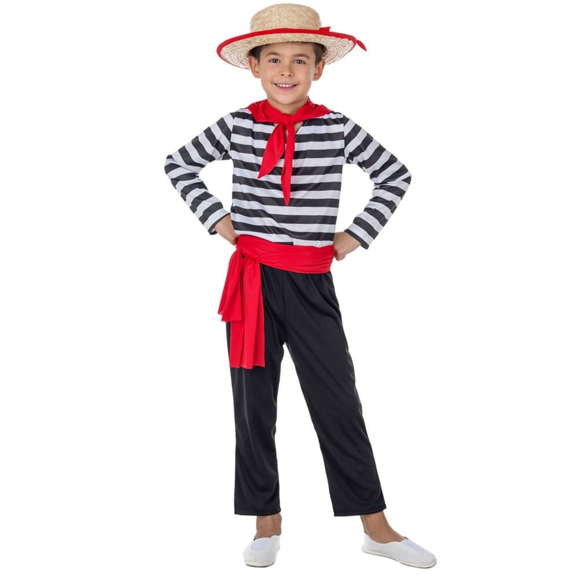 Bonito Fato de Gondoleiro composto por camisola, calças, faixa para a cintura, lenço para o pescoço e chapéu. Demais acessórios não incluídos.Dados Técnicos