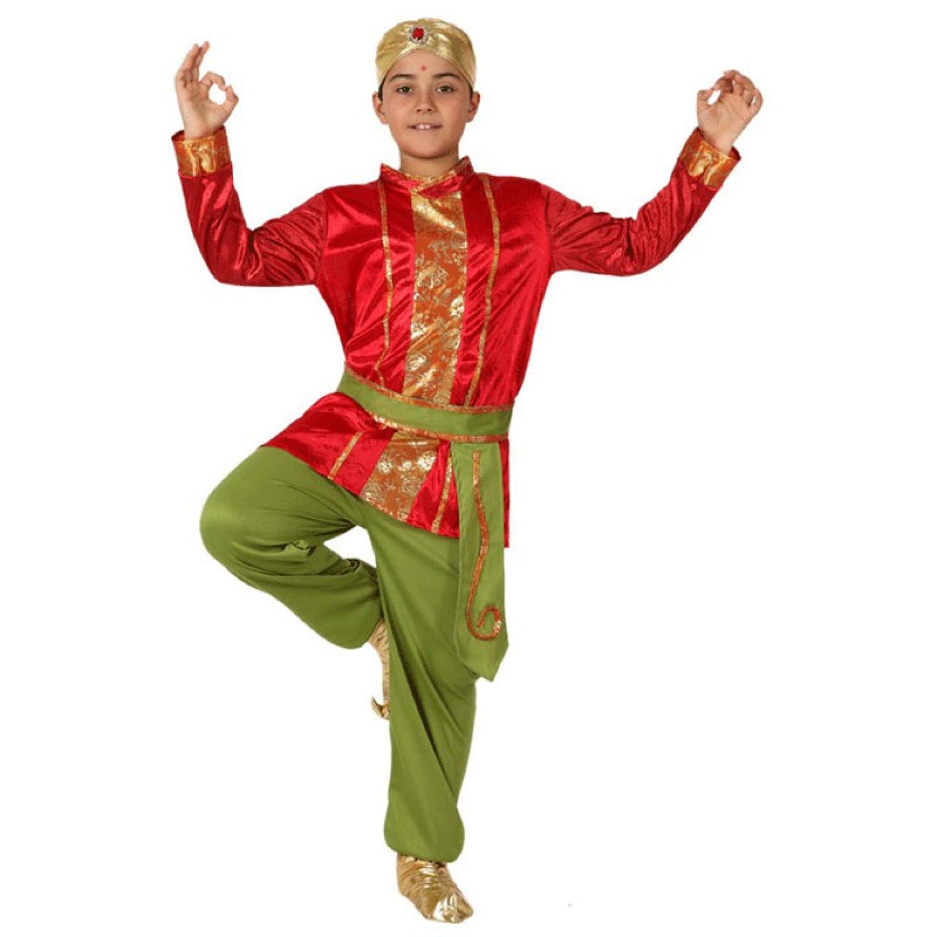 Elegante Fato Hindú para Menino. Disfarce composto por camisola, calças, faixa para a cintura e turbante. Demais acessórios não incluídos.Dados Técnicos