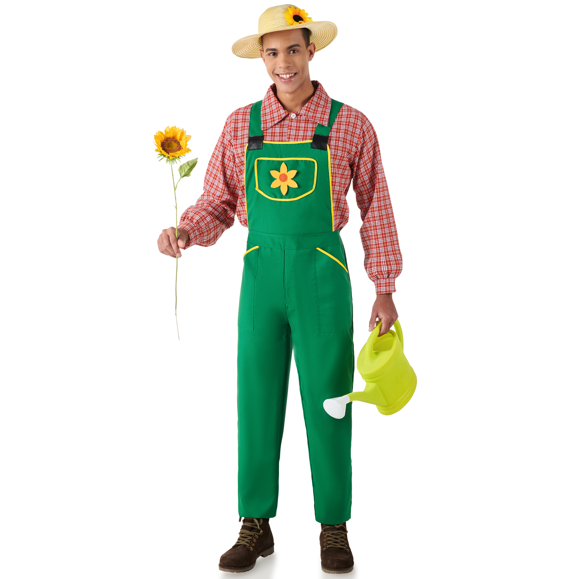 Fato Jardineiro Homem. Disfarce composto por camisa, jardineiras e chapéu de palha. Demais acessórios não incluídos.Dados Técnicos