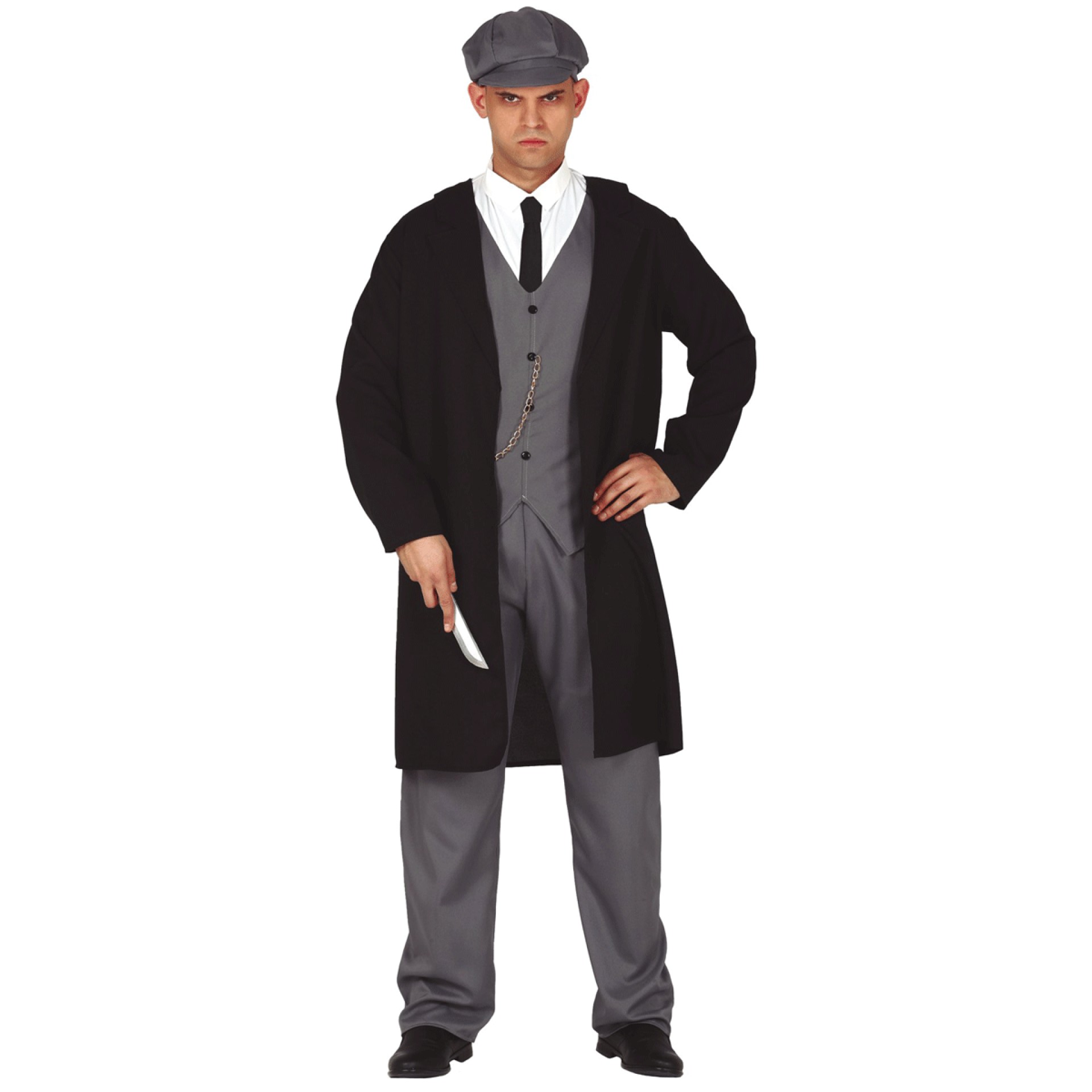 Elegante Fato de Mafioso de Birmingham composto por casaco, colete com camisa e gravata anexadas, calças e chapéu. Demais acessórios não incluídos.Dados Técnicos