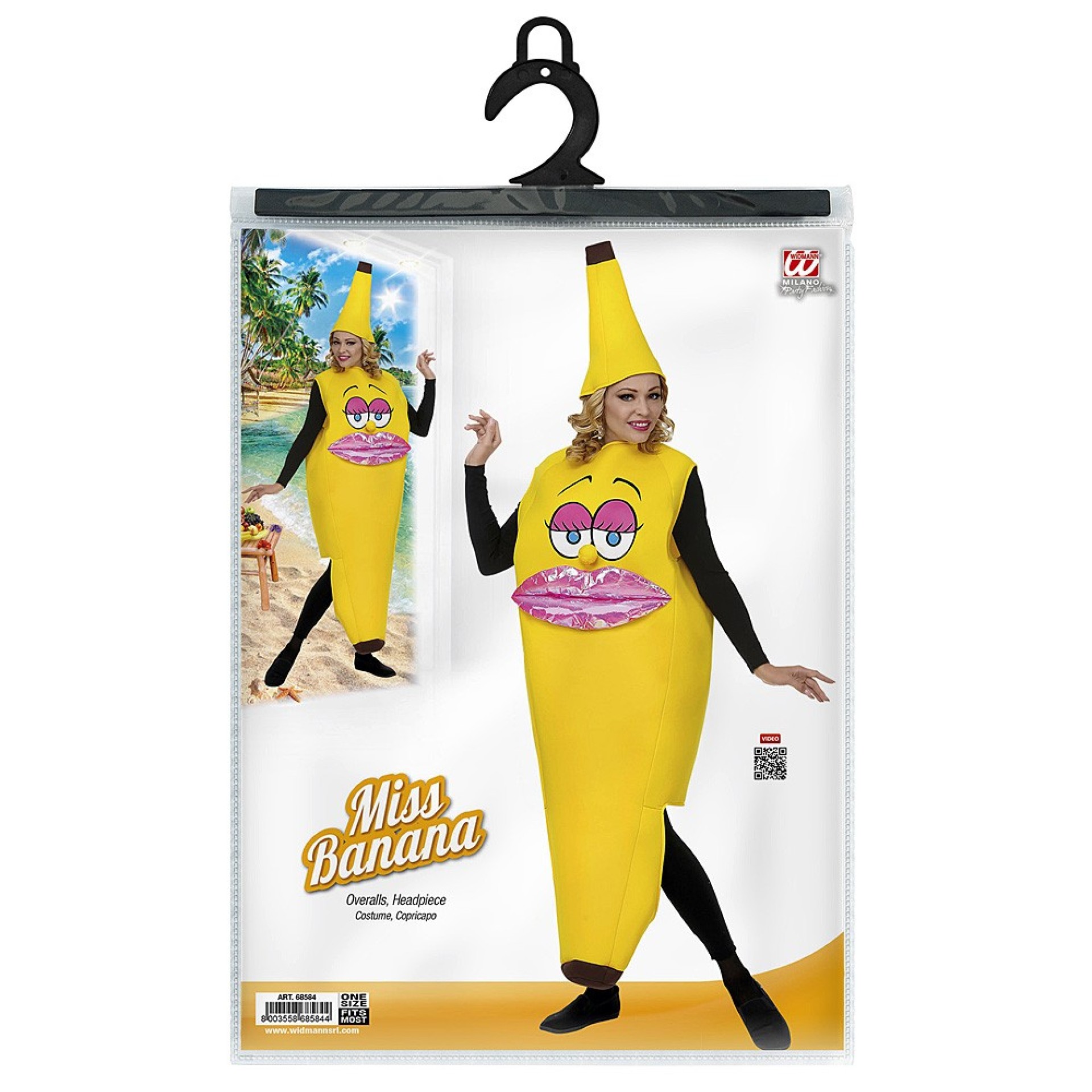 Fantástico Fato de Miss Banana para te divertires com os teus amigos. Disfarce composto por fato com boca e olhos e chapéu. Demais acessórios não incluídos.Dados Técnicos