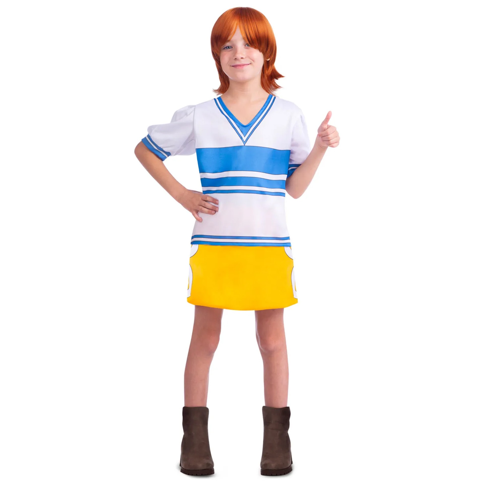 Acompanha Luffy nas suas aventuras. Disfarce Nami composto por camisola, saia e peruca. Demais acessórios não incluídos.