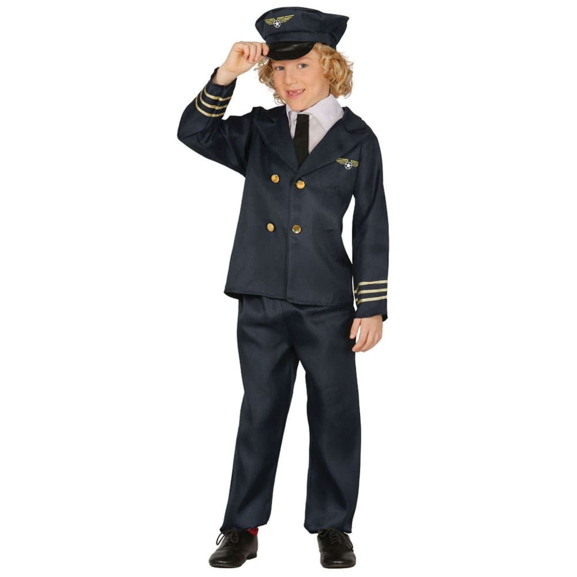 Vais ficar um arrojado piloto com este realista disfarce que inclui chapeu, casaco com botões dourados e calças.Dados Técnicos