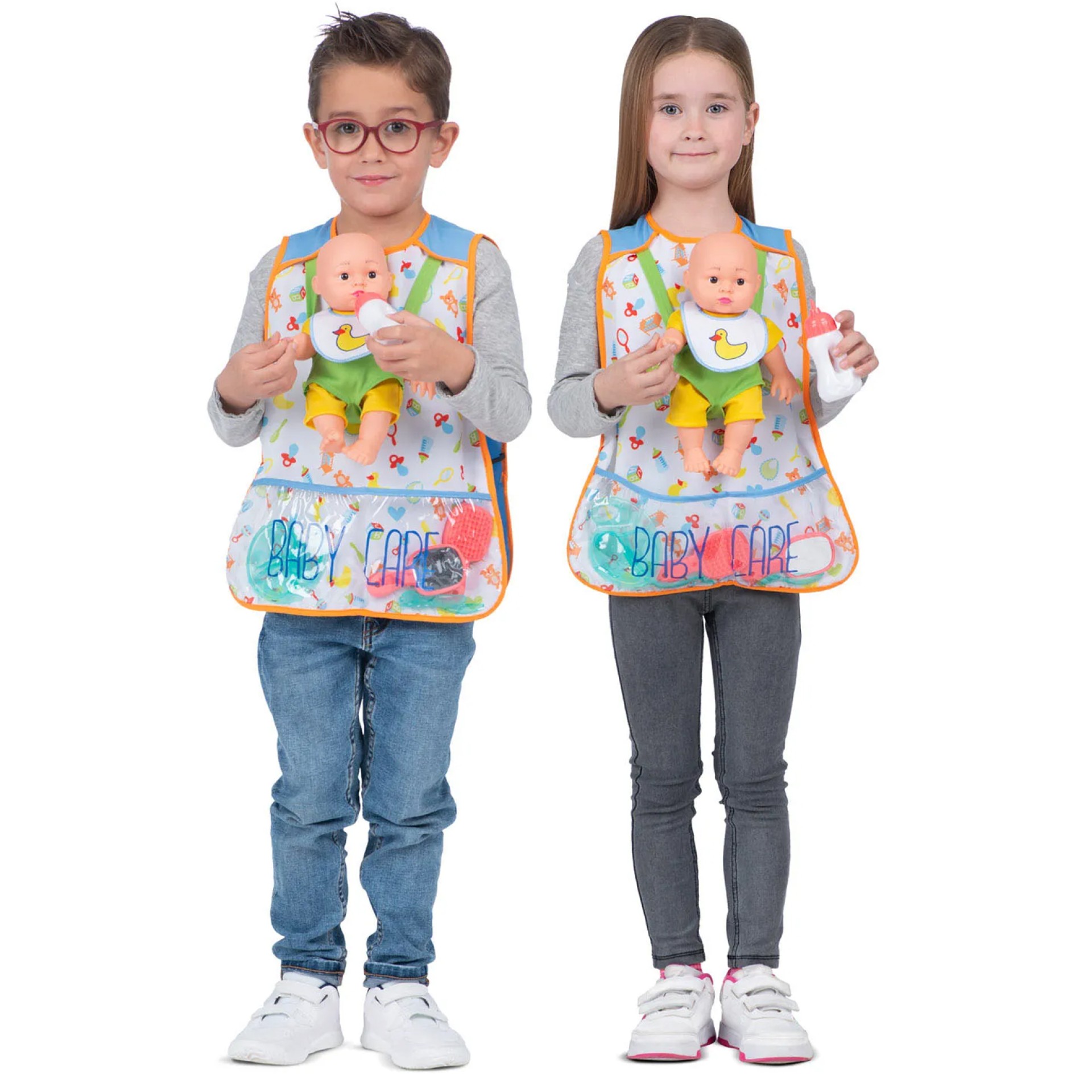 Transforma-te numa verdadeira mamã ou papá com este fantástico fato. Disfarce composto por bata, bebé e acessórios para bebé (biberon, prato, garfo, colher, escova e espelho). Demais acessórios não incluídos.Dados Técnicos